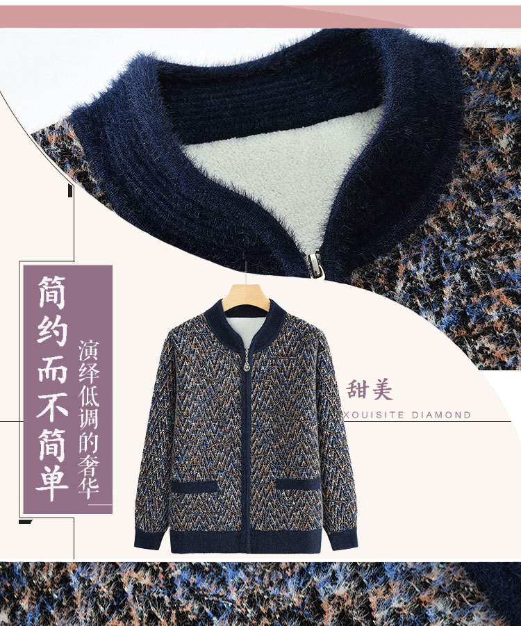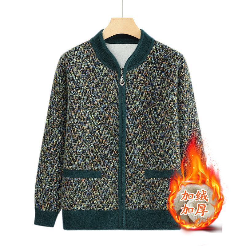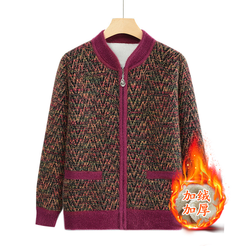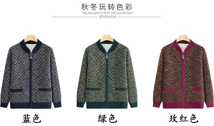 할머니 가을 기모 카디건 스웨터 2024 새 니트웨어 50 세 여성 어머니 느슨한 캐주얼 코트