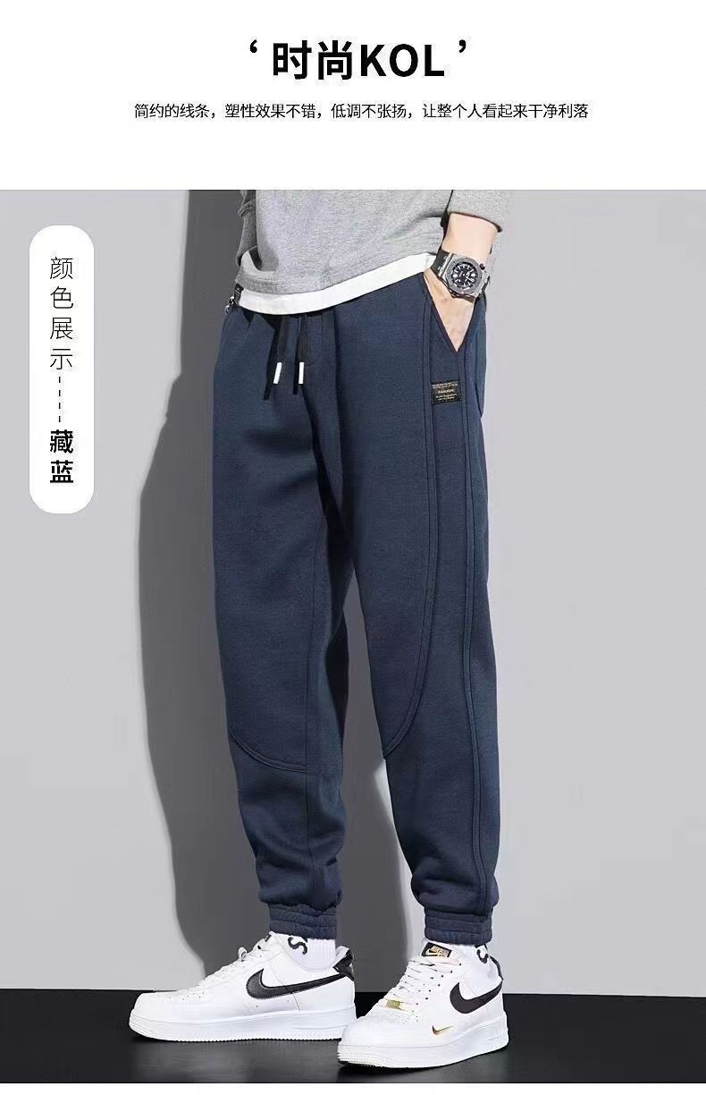 운동복 남자 기모 두꺼운 봄과 가을 유행 올매치 청소년 스포츠 다리 발가락 캐주얼 바지 남자 가을