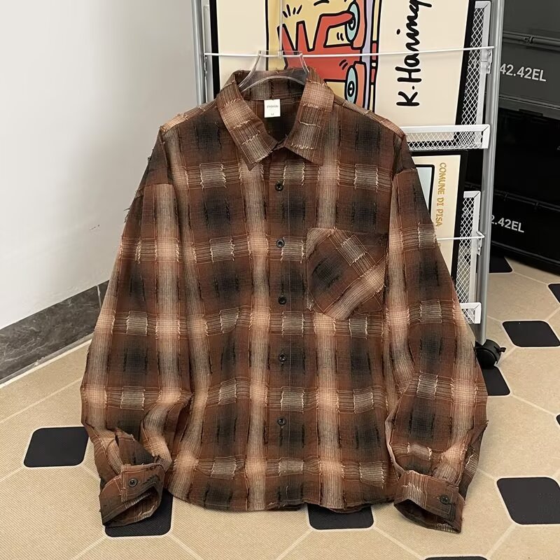 아메리칸 스타일 셔츠 남자의 긴팔 골동품 코트 봄과 가을 푹신한 잘 생긴 가을 십대 세련된 옷깃 정사이즈 표준 꽃스토어 가기