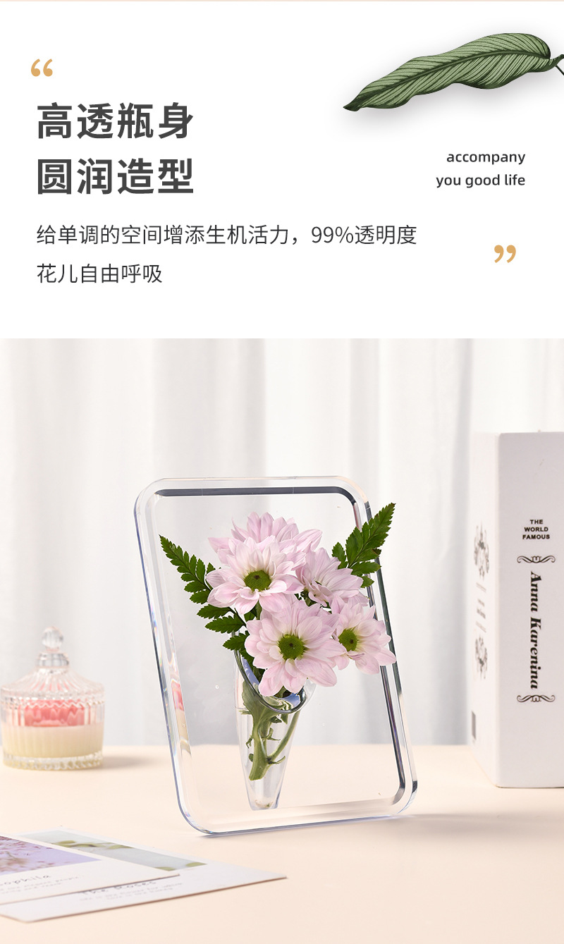 가벼운 럭셔리, 창의적인 투명 사진액자 꽃병, 북유럽 스타일의 심플한 탁상 장식품, 수경 투명 꽃병, 여신의 날 선물