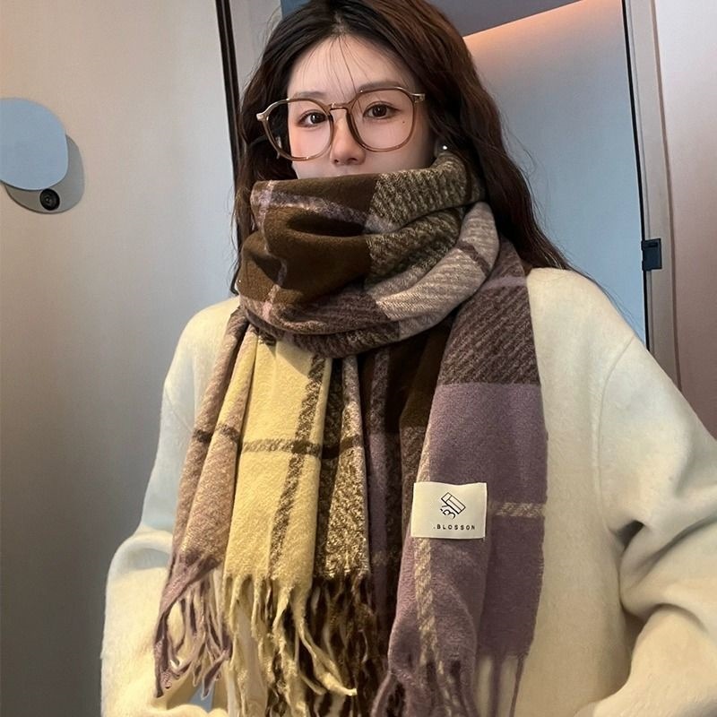 겨울 신형 한국식 올매치 학생 스카프 남자 따뜻한 냉방색 매칭 플레이드 롱 올매치 숄스 여성용 스카프스토어 가기