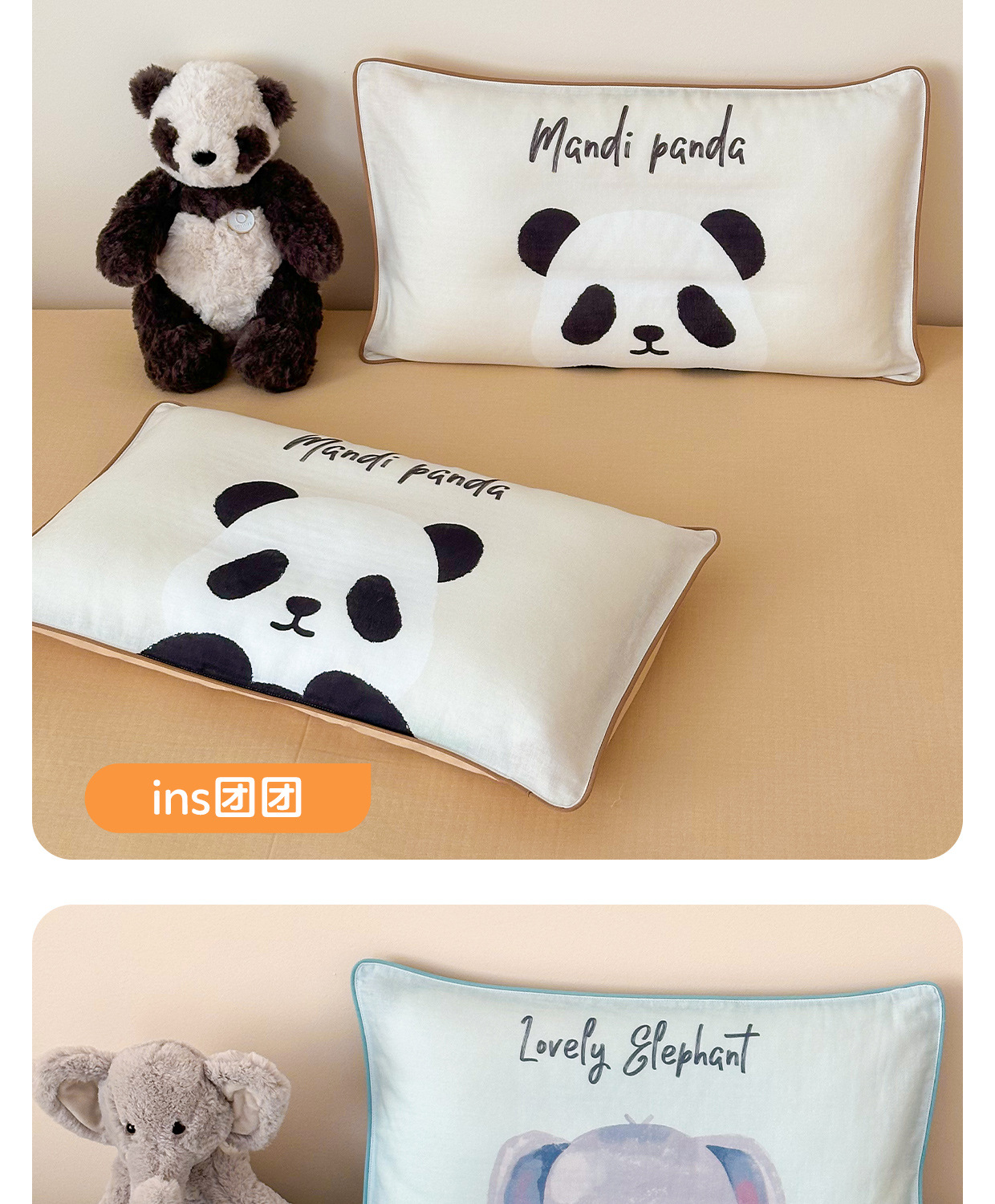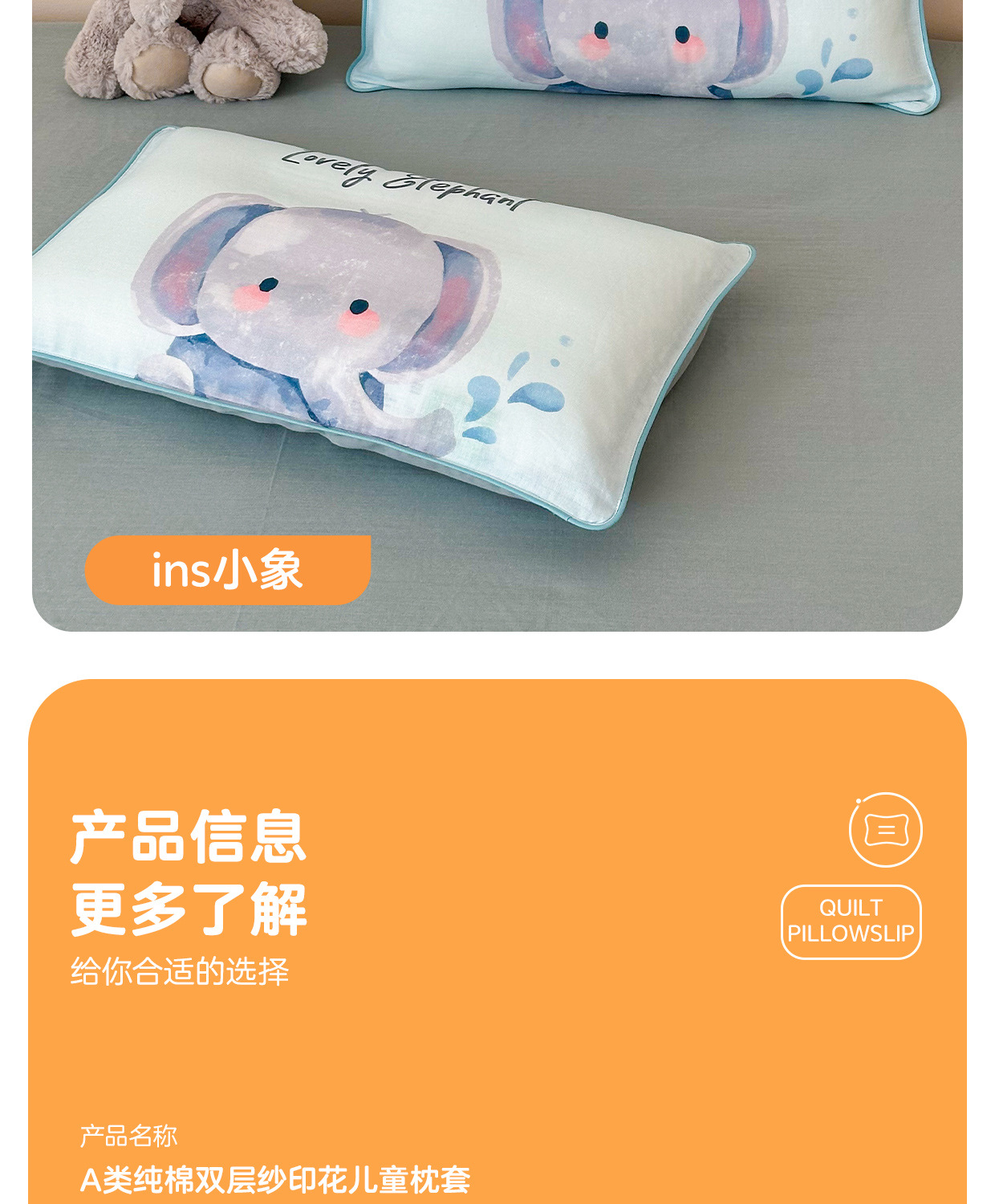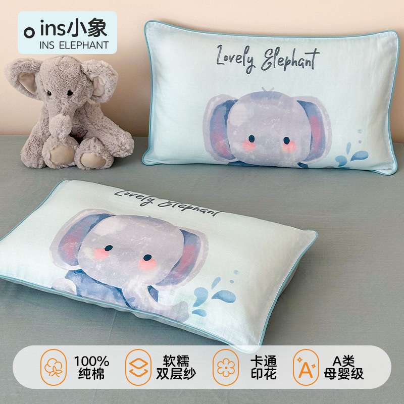• ins 꼬마코끼리(이중 거즈 베갯잇+항균 베개심) 투피스 세트