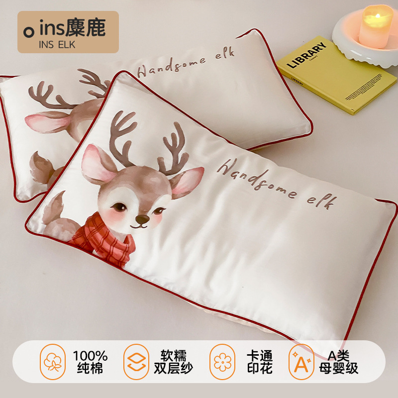 클래스 A 이중층 실 어린이 베갯면면 아기 베갯잇이 땀 흡수성 통기성 거즈 만화 베갯벌 3050스토어 가기
