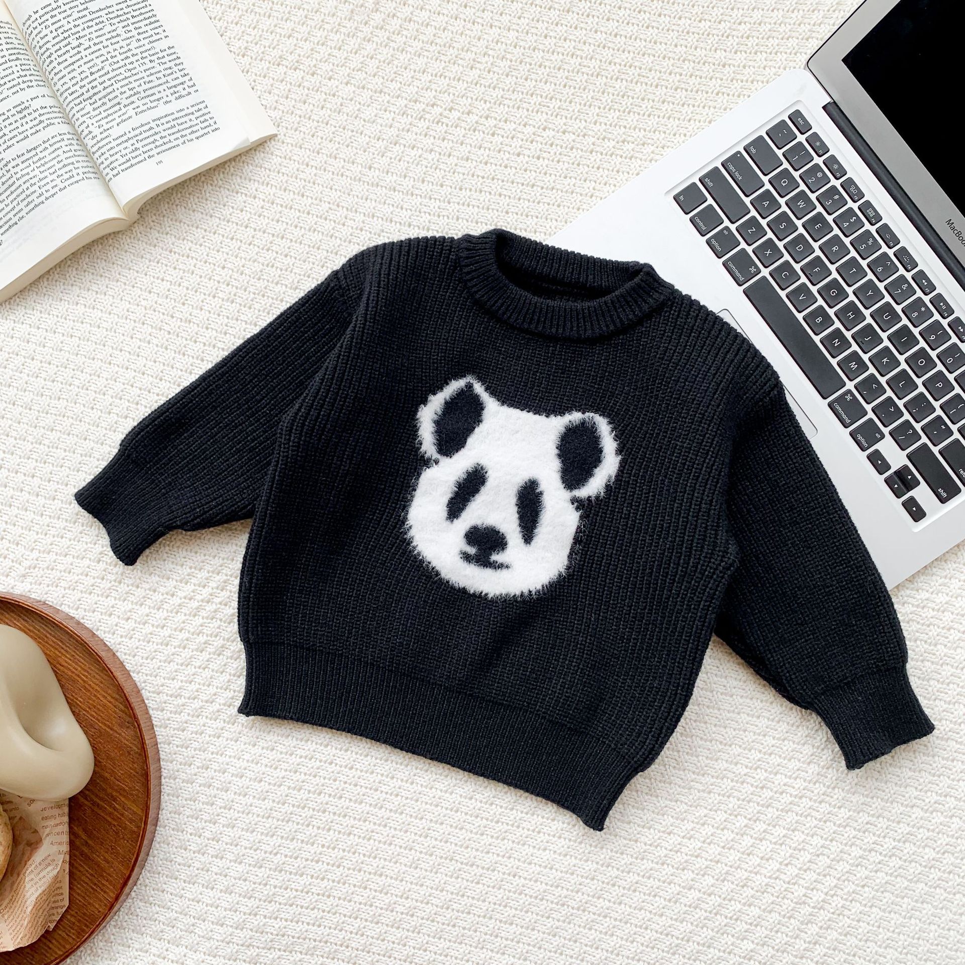 아동용 스웨터 2025 겨울 신상 만화 팬더 니트 스웨터 남아 여아 아기 외출용 긴팔 베이스 레이어 트렌디