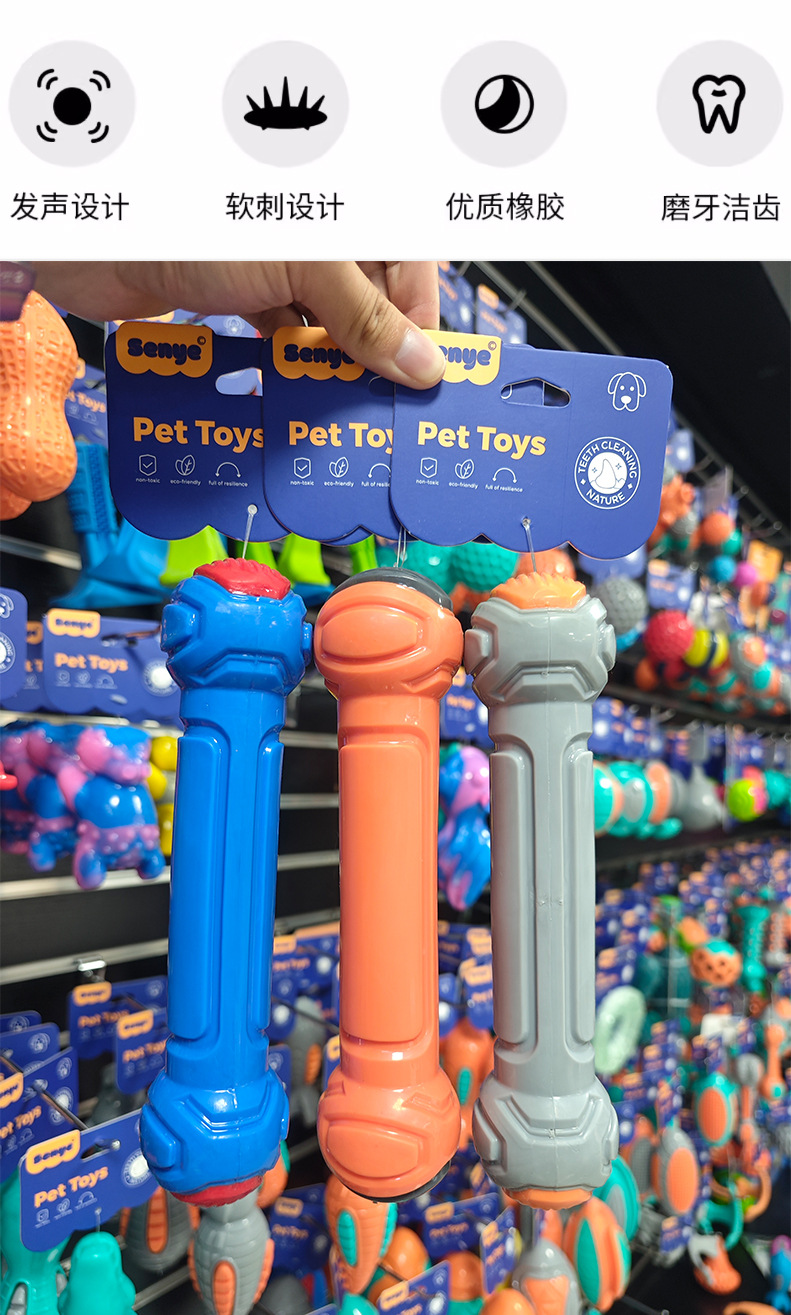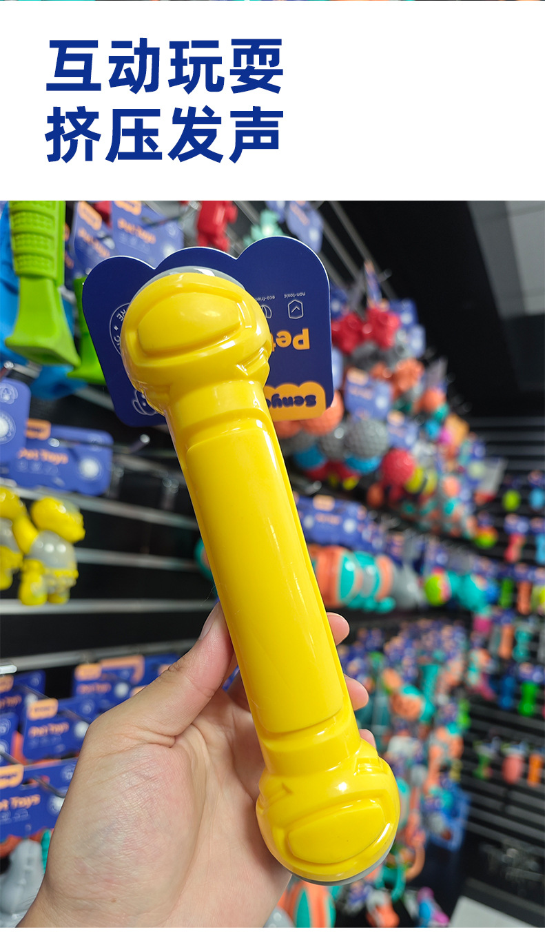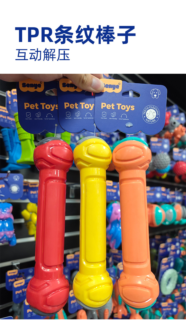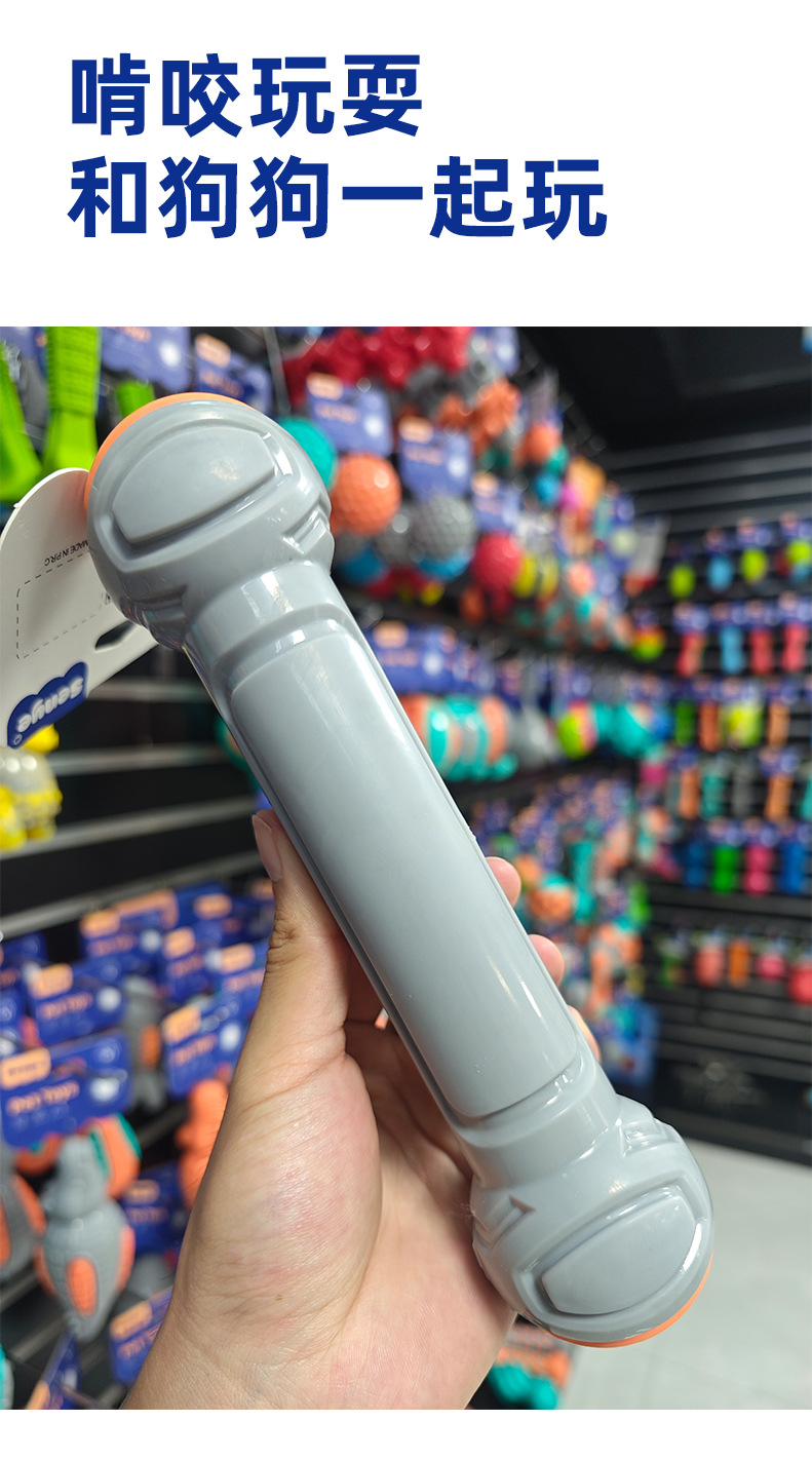 새로운 애완 동물 장난감 물린 방지 치아 청소 TPR 태극권 바벨 스틱 개 장난감 어금니 장난감 도매
