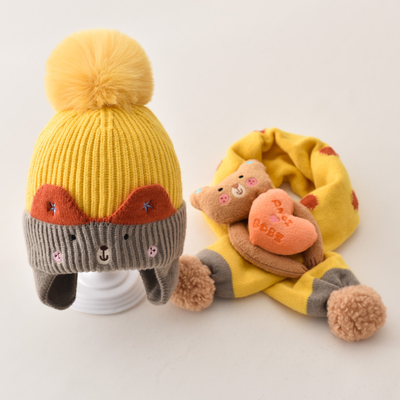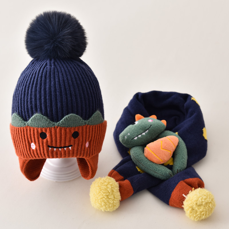어린이 모자 소년의 겨울 아기 양모 모자 귀 보호 소년 스카프 세트 소녀의 아기 유아 가을과 겨울