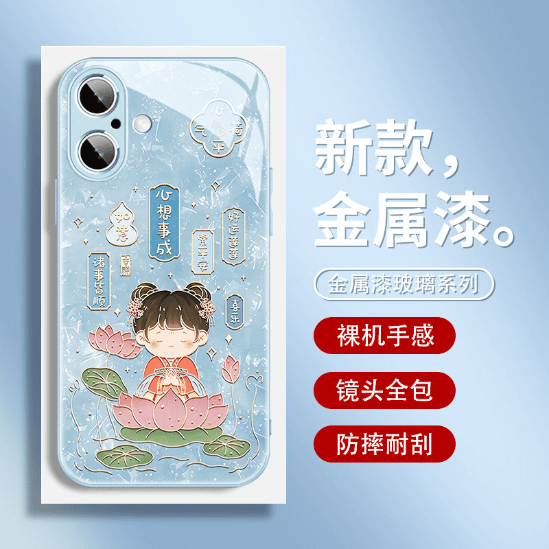 • 메탈릭 페인트 유리 쉘 Yuanfeng 블루 앤티크 스타일 소녀 0914