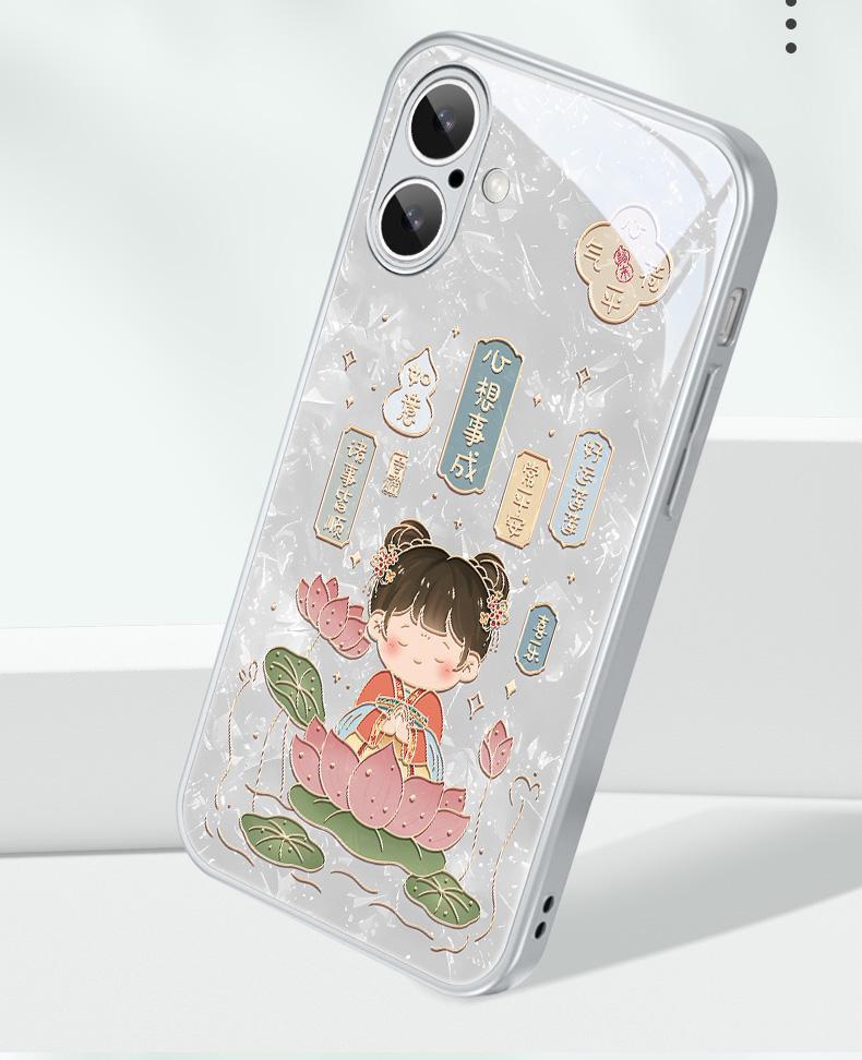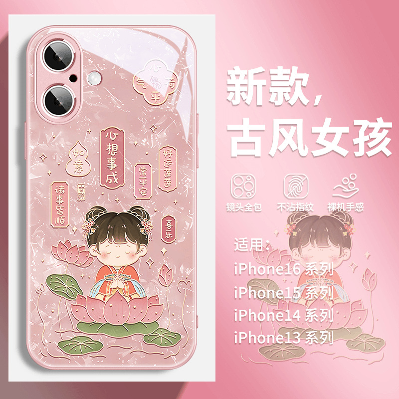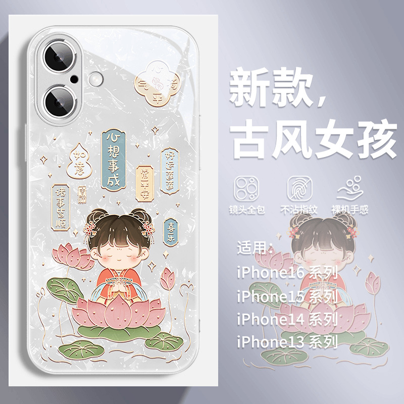 골동품 소녀 애플 16/15Pro 전화 케이스 14 유리 15 새로운 X 인터넷 연예인 12/11/xs 귀여운 소녀