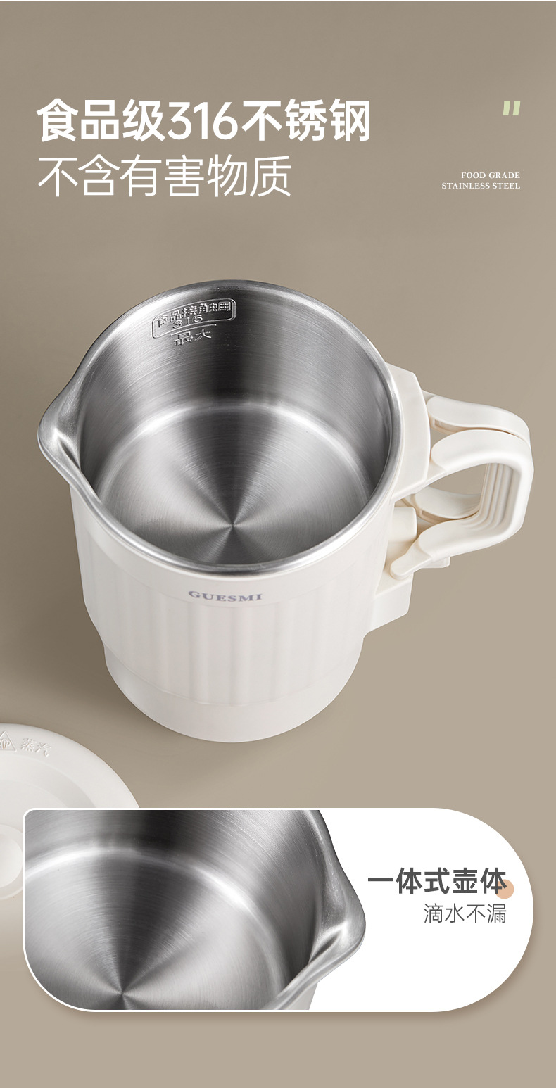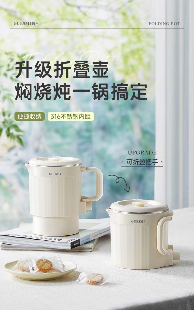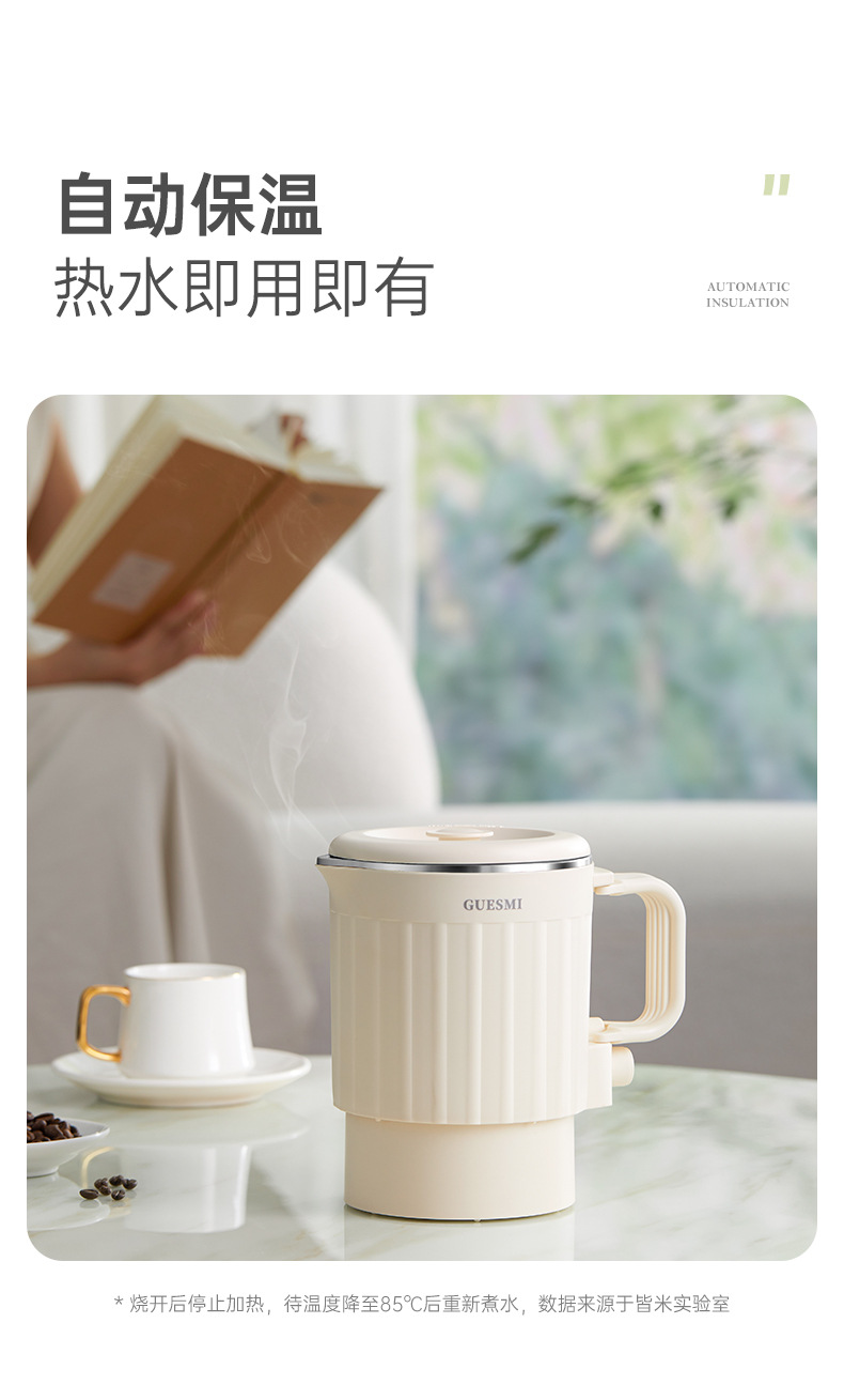 접이식 주전자 미국 110V 유럽 재고 여행 휴대용 주전자 절연 통합 미니 전기 주전자 스테인레스 스틸