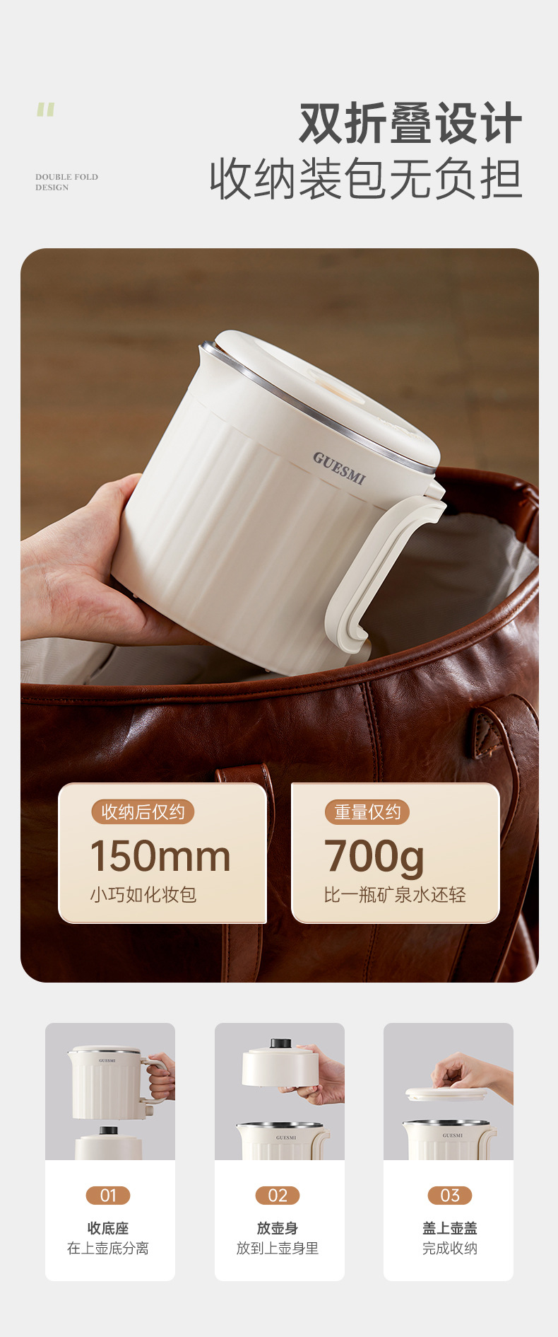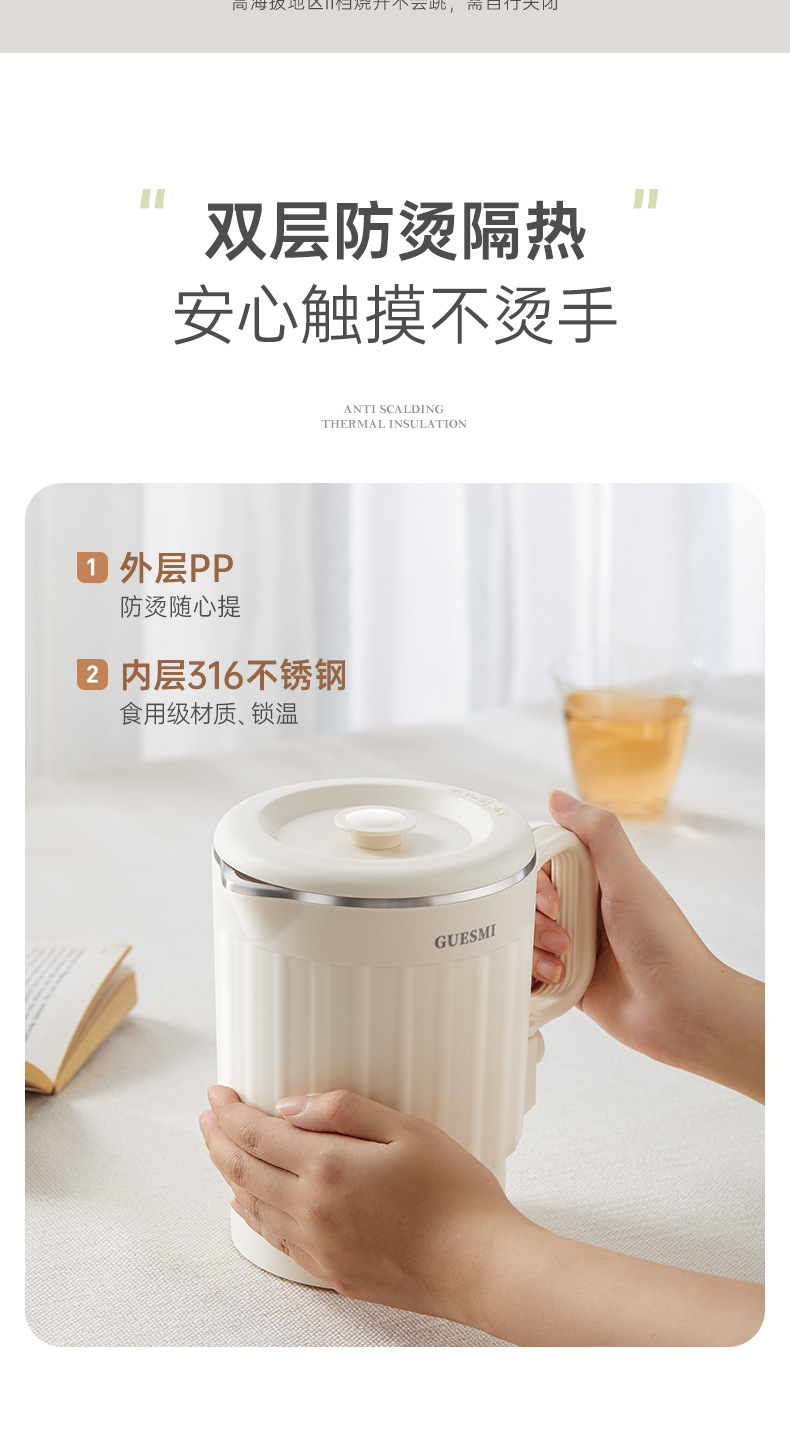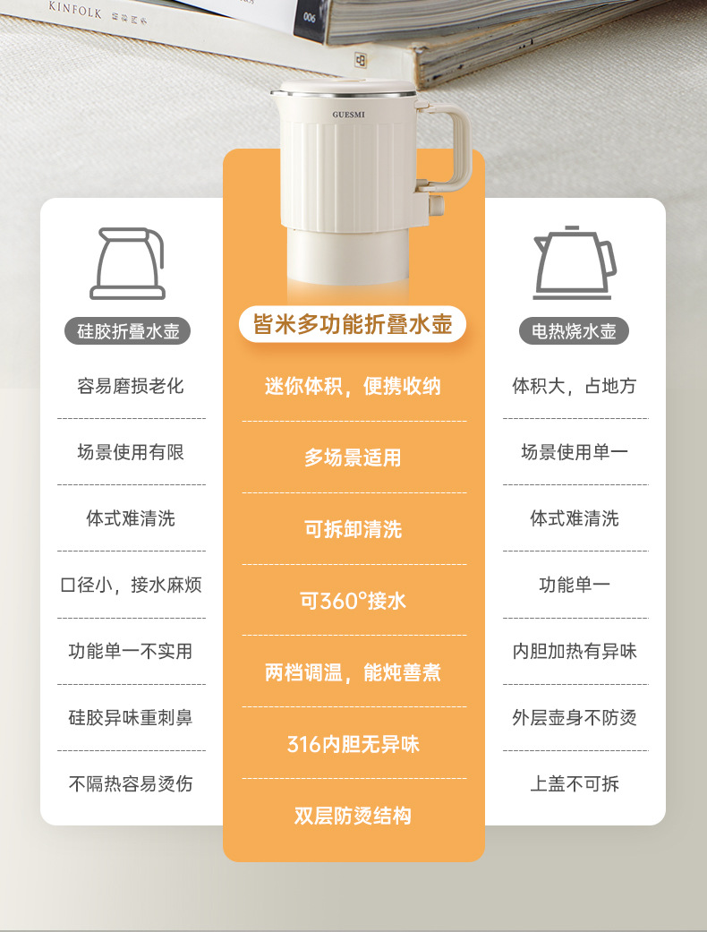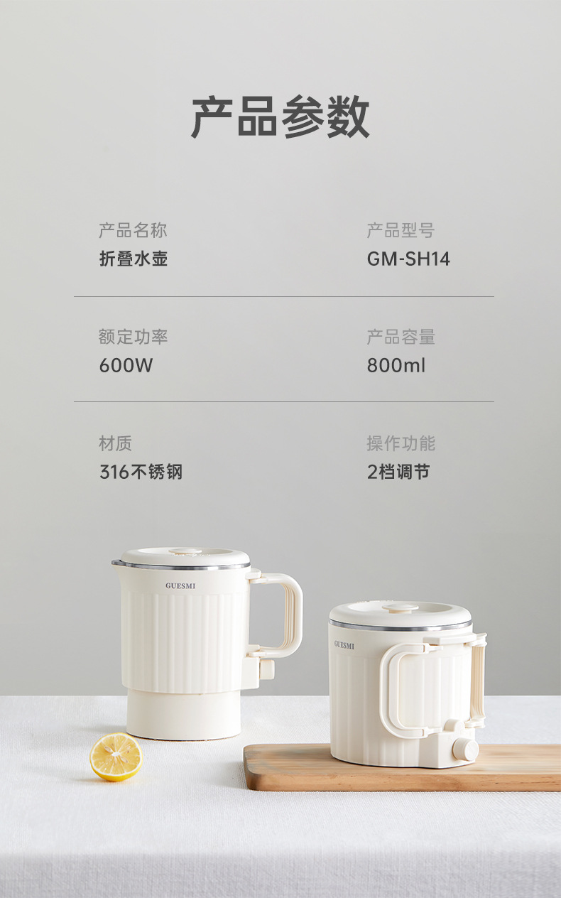접이식 주전자 미국 110V 유럽 재고 여행 휴대용 주전자 절연 통합 미니 전기 주전자 스테인레스 스틸