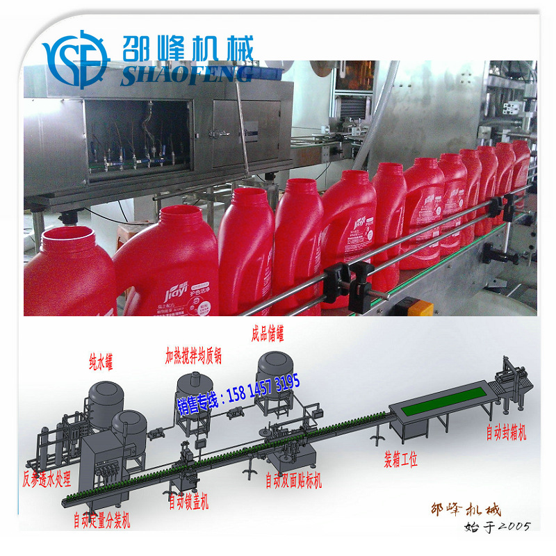 自动灌装机用于:洗衣液的自动定量分装。具有定量、出料口防滴漏。