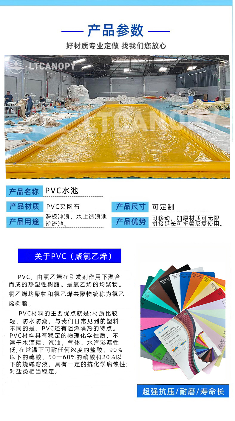 공장 도매 실내 및 실외 PVC 인공 파도 서핑 수영장 스케이트 보드 서핑 수영장 워터 파크 장비