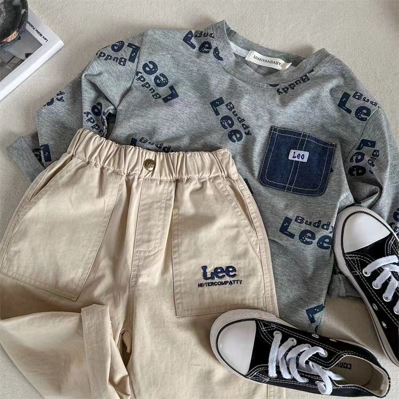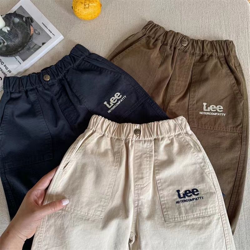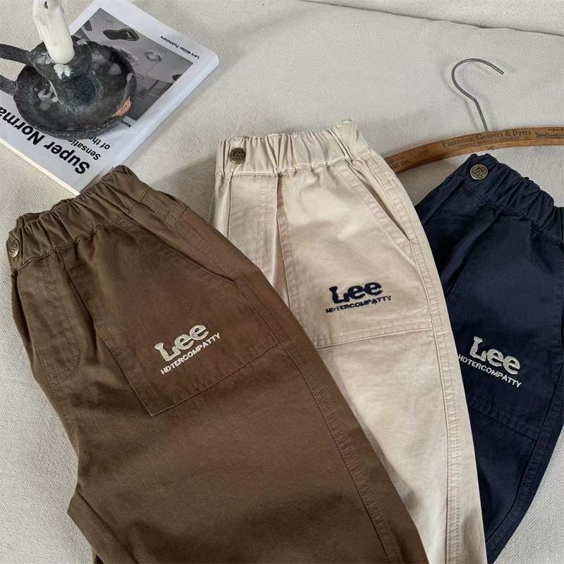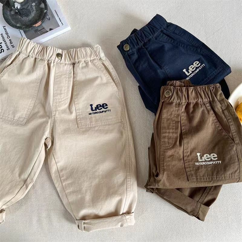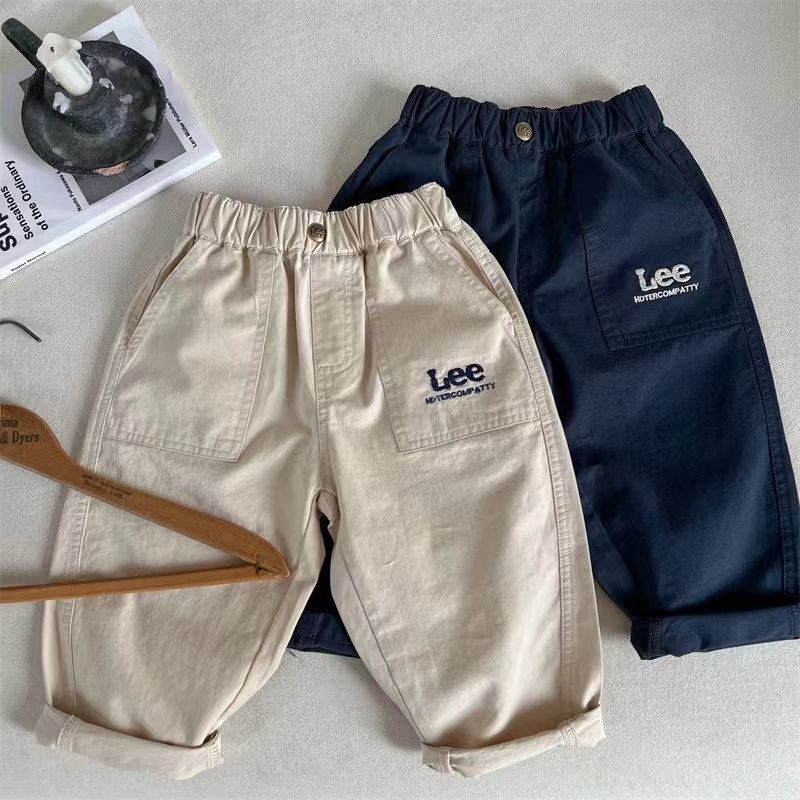 아동 캐주얼 바지 2025 가을 새로운 한국 스타일 소년과 소녀 수 놓은 편지 바지 아기 단색 면화 바지 유행스토어 가기