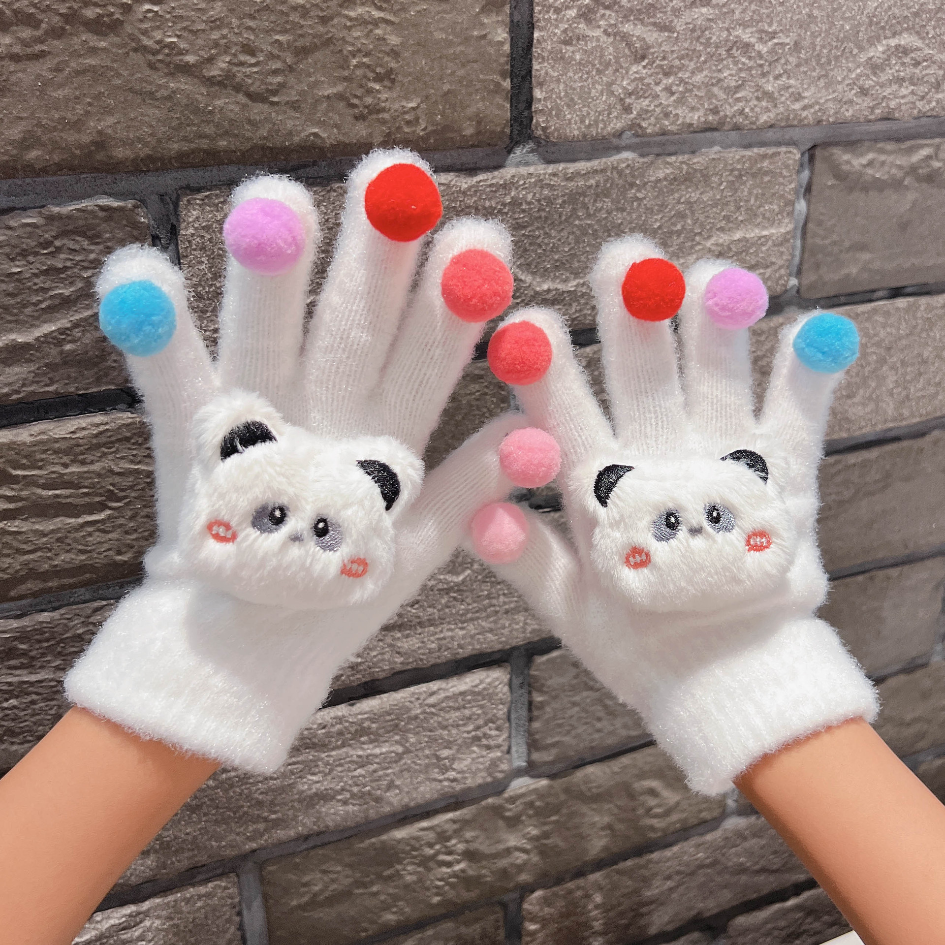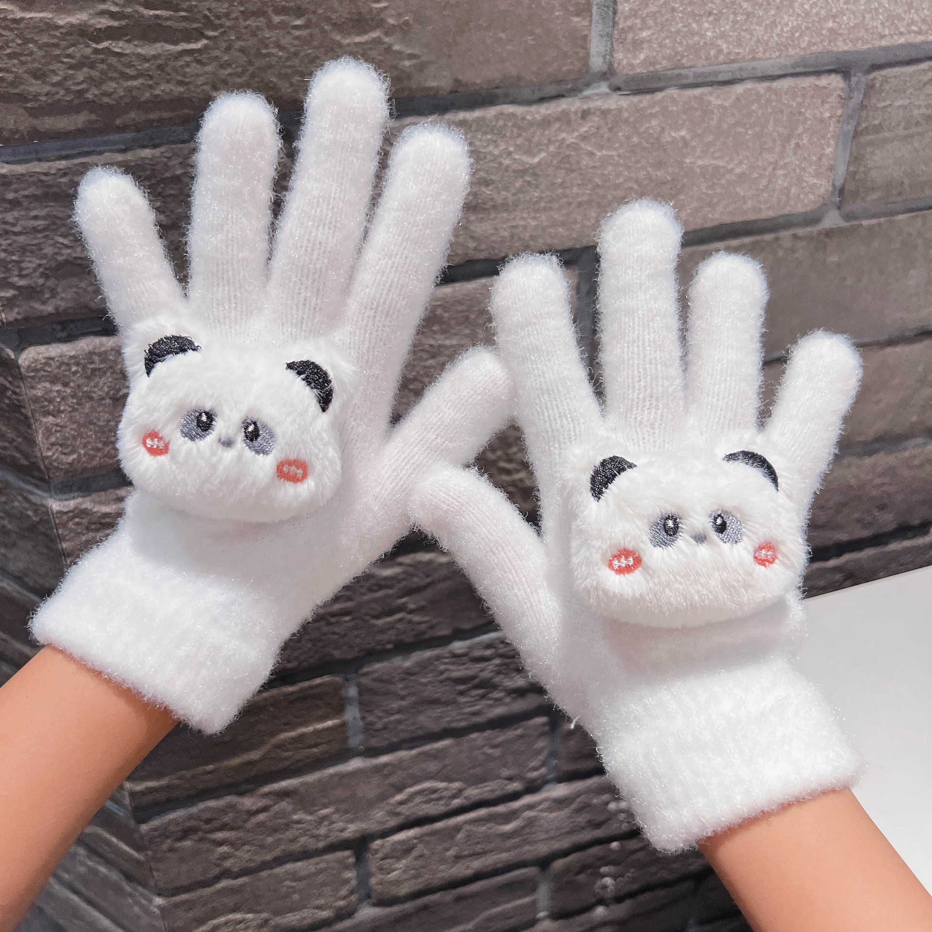 • 어린이장갑 다섯손가락 털볼 [팬더+흰장갑]
