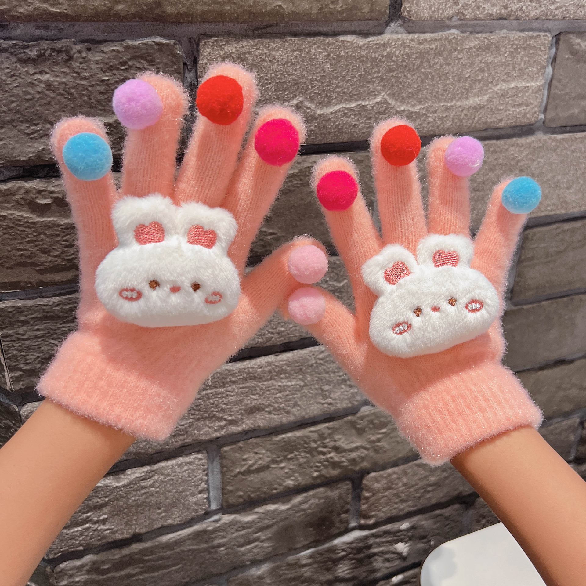 • 어린이장갑 다섯손가락 퍼볼 [사랑토끼+핑크장갑]