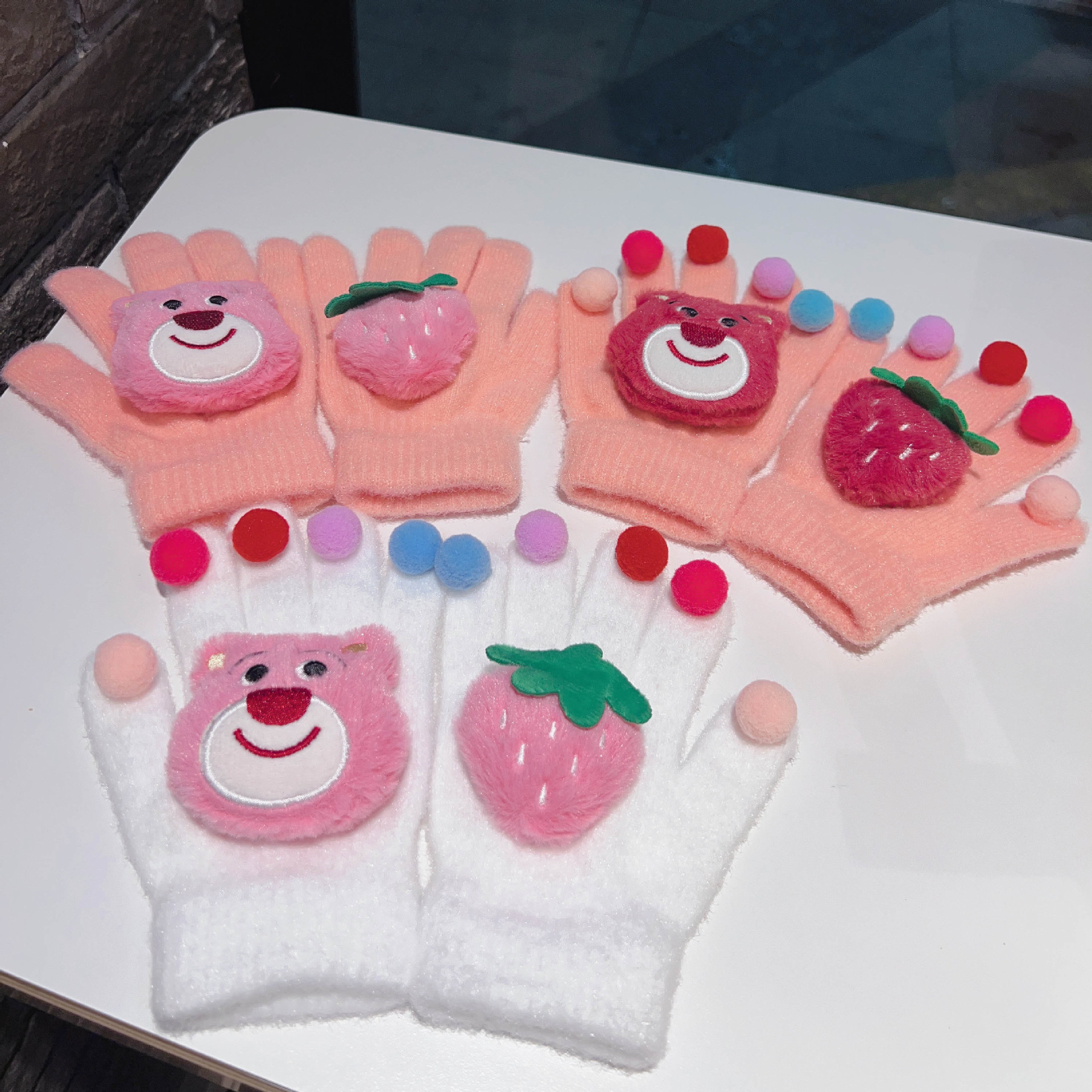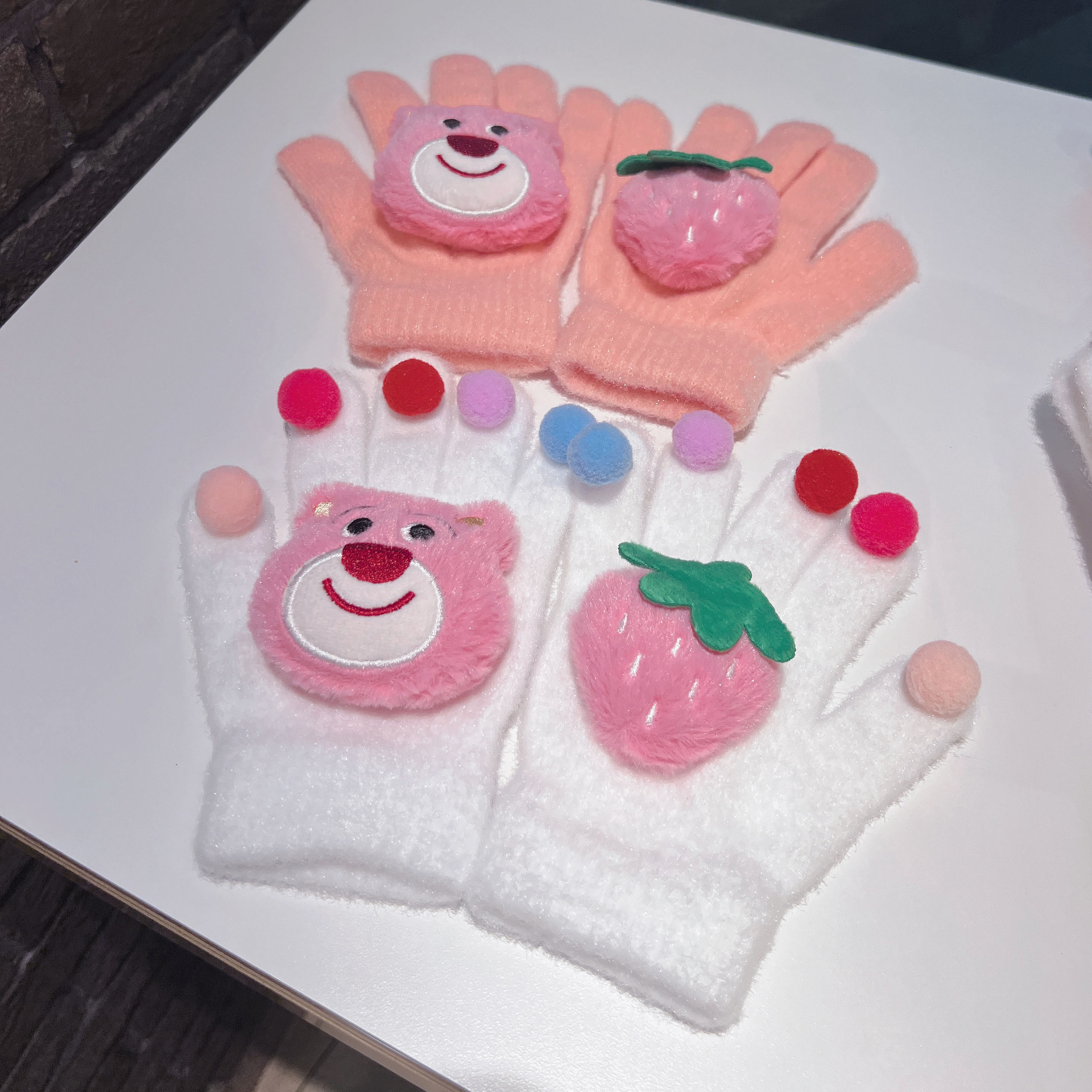 • 어린이장갑 다섯손가락 퍼볼 [핑크딸기곰+흰장갑]
