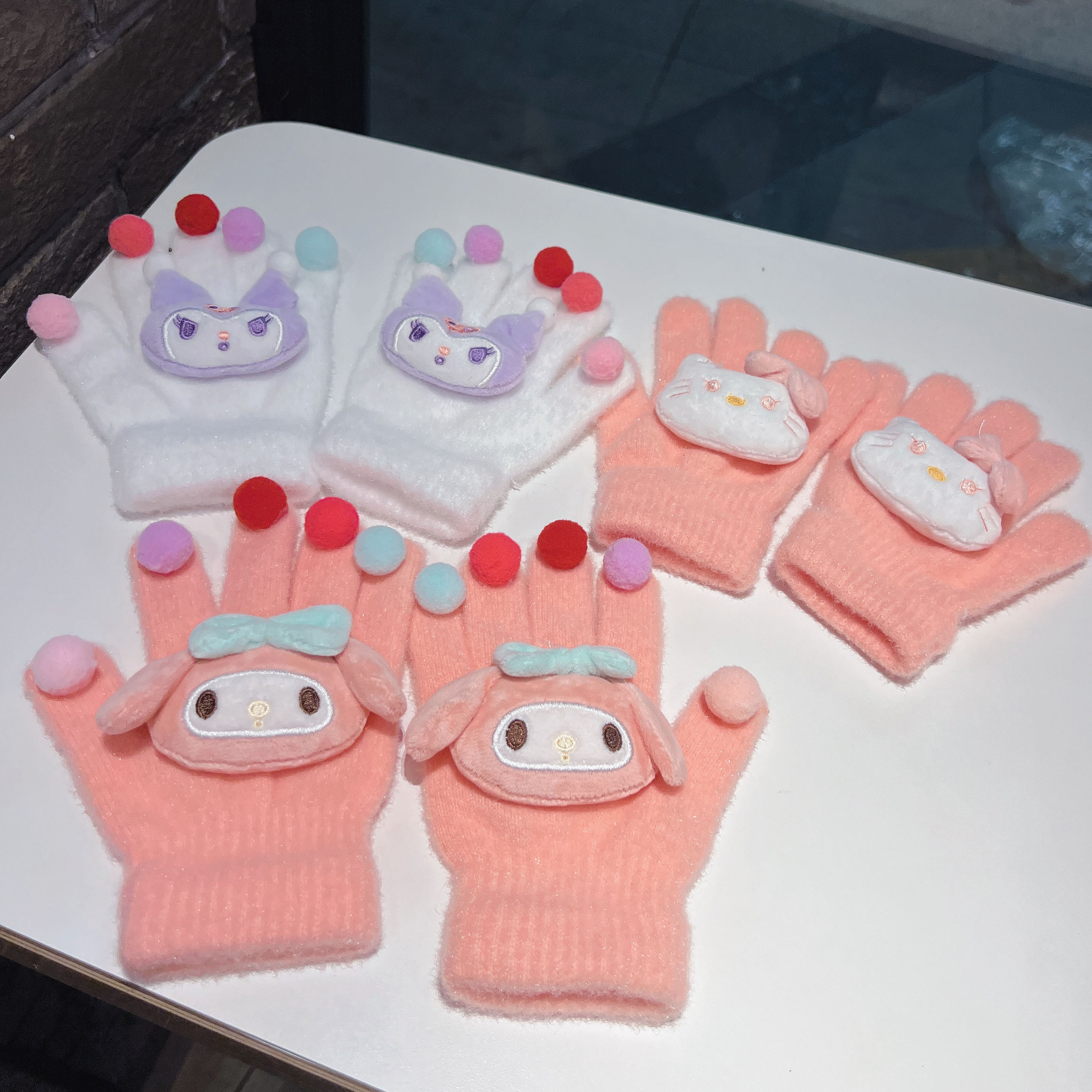 어린이 멜로디 쿨로미 다섯 손가락 장갑 가을과 겨울 한국 만화 학생들은 두꺼운 귀여운 따뜻한 장갑을 배웁니다.스토어 가기