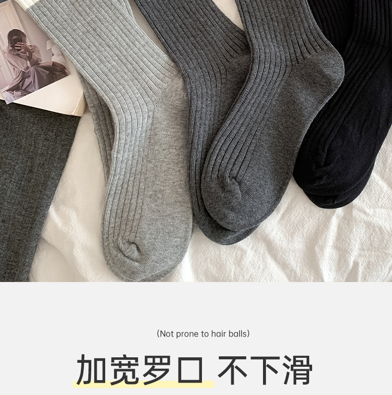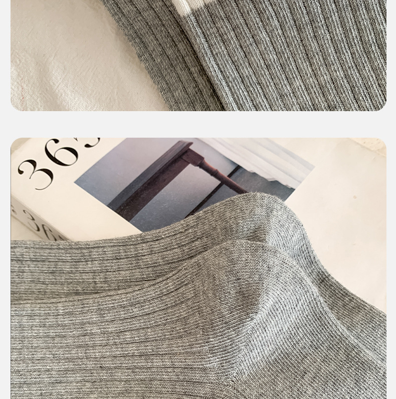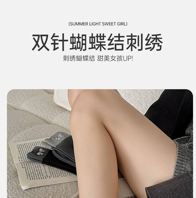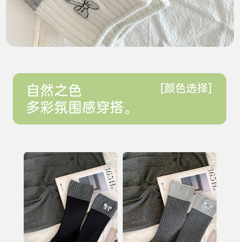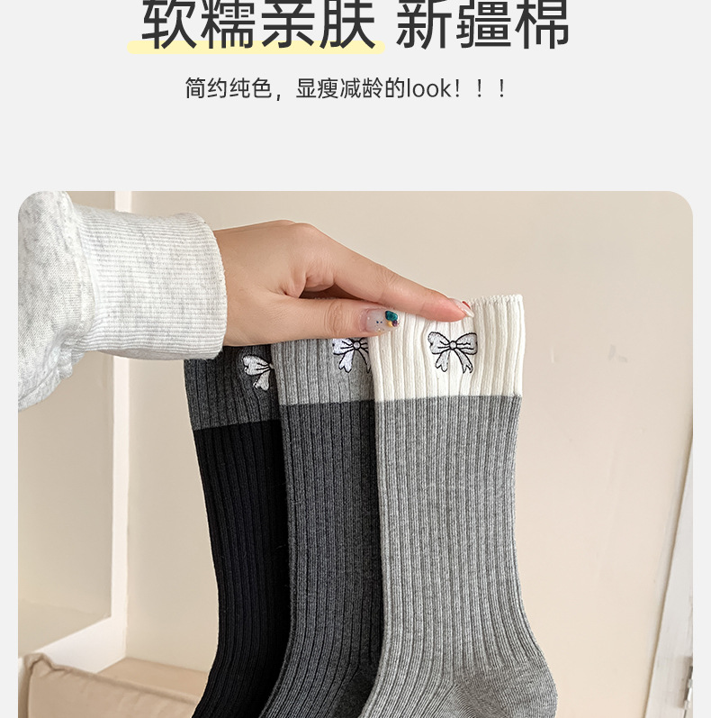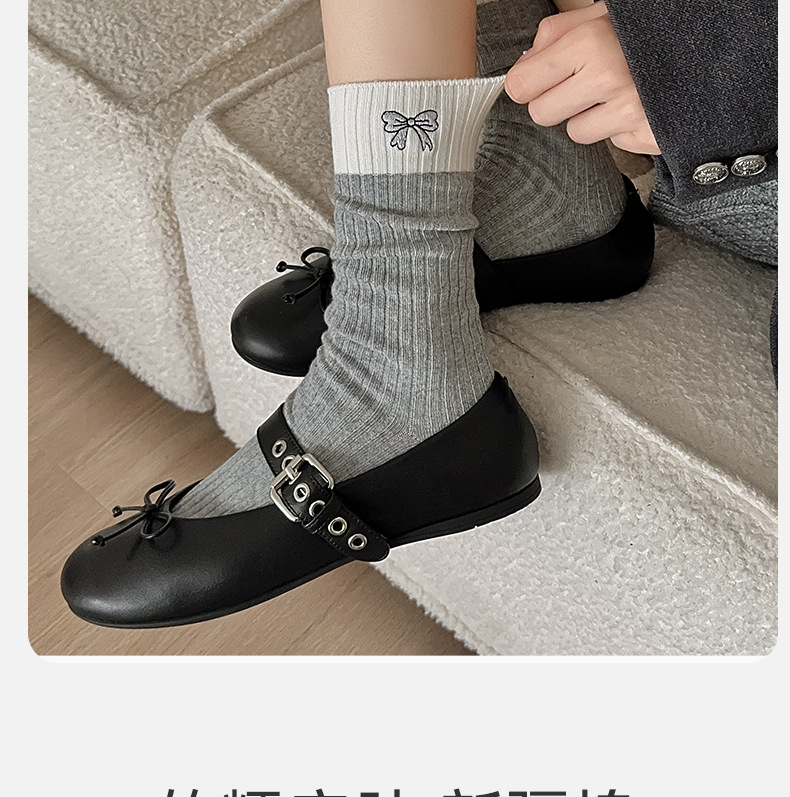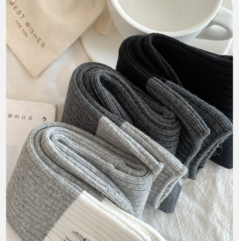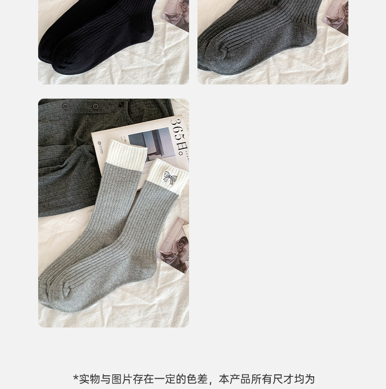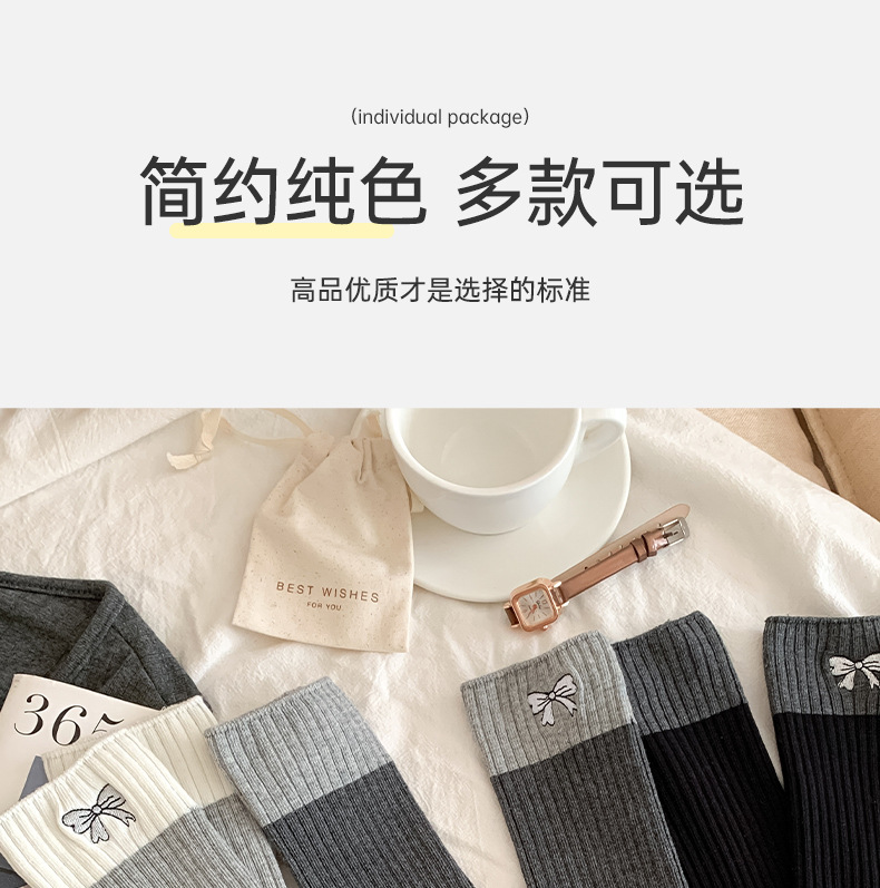 회색 양말 여성용 가을 겨울 순면 중목 양말 리본 자수 배색 여성 양말 항균 방취 롤업 양말 롱 양말스토어 가기