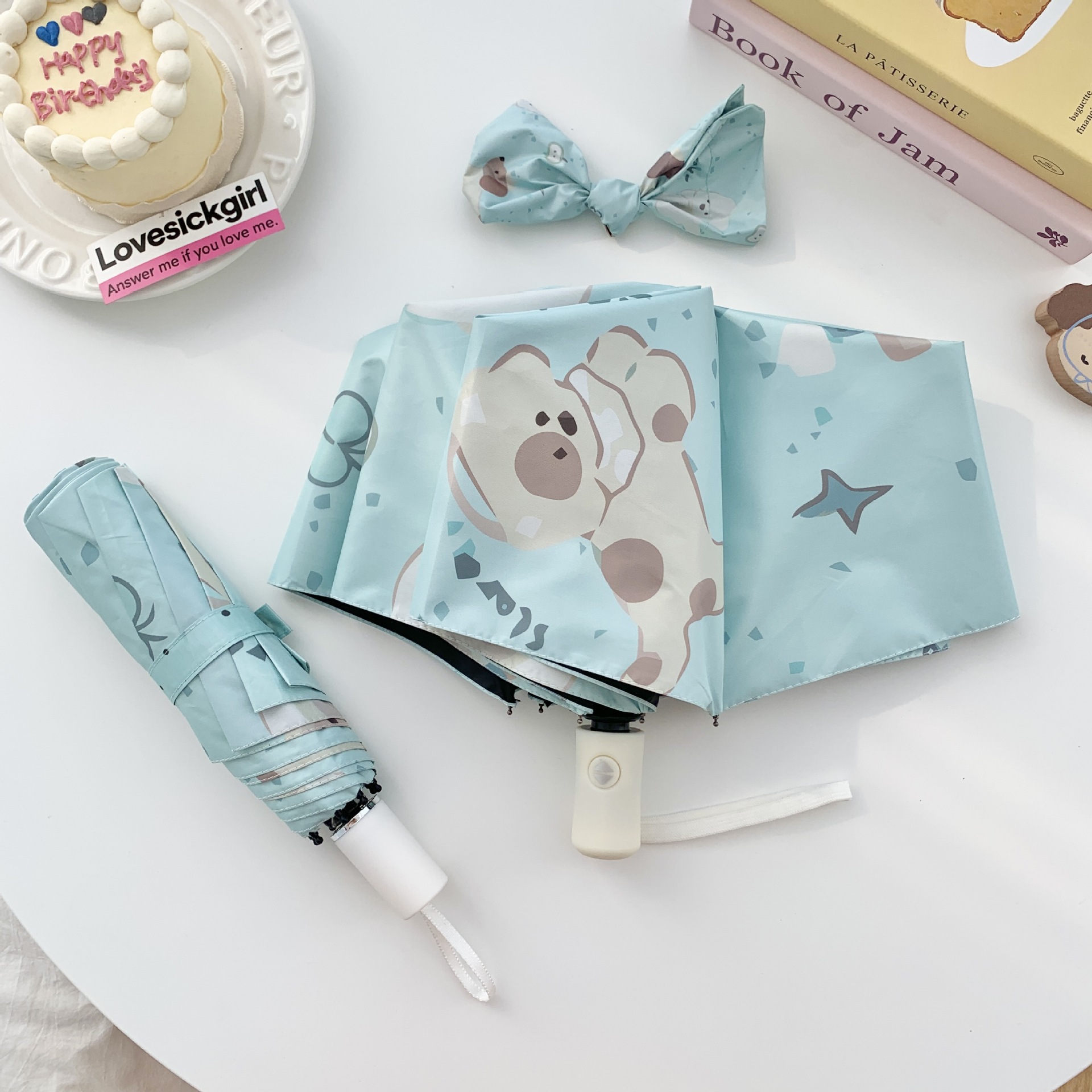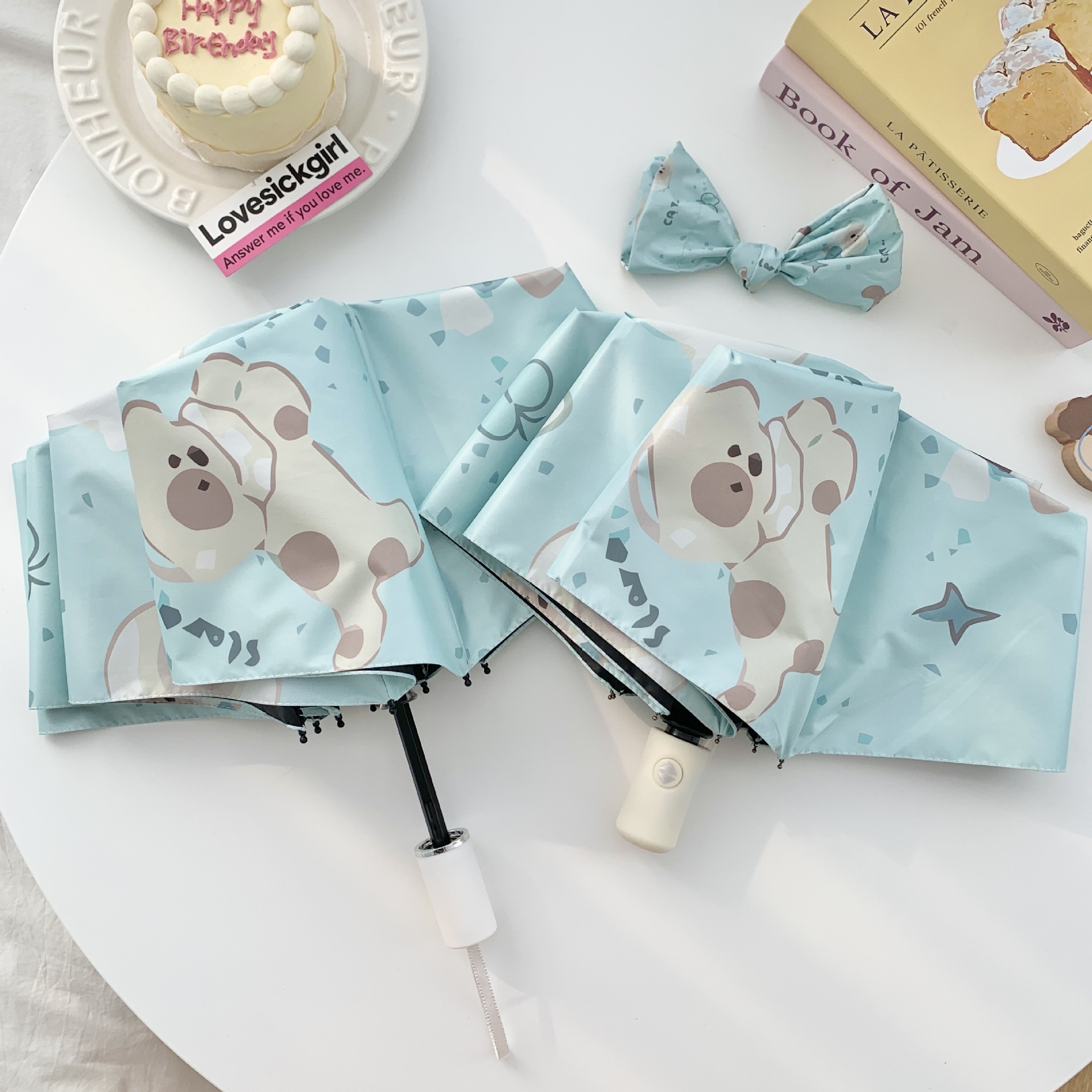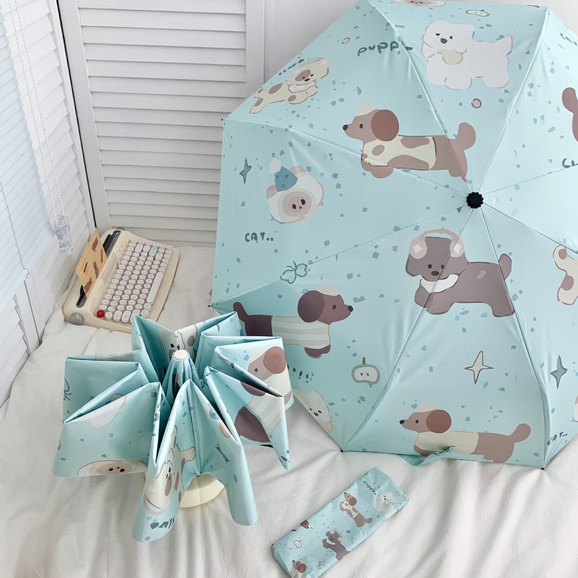 귀여운 강아지 우산 완전 자동 검은 고무 햇빛 접히는 햇빛과 비 이중 목적 선 스크린 UV 학생 태양 우산스토어 가기