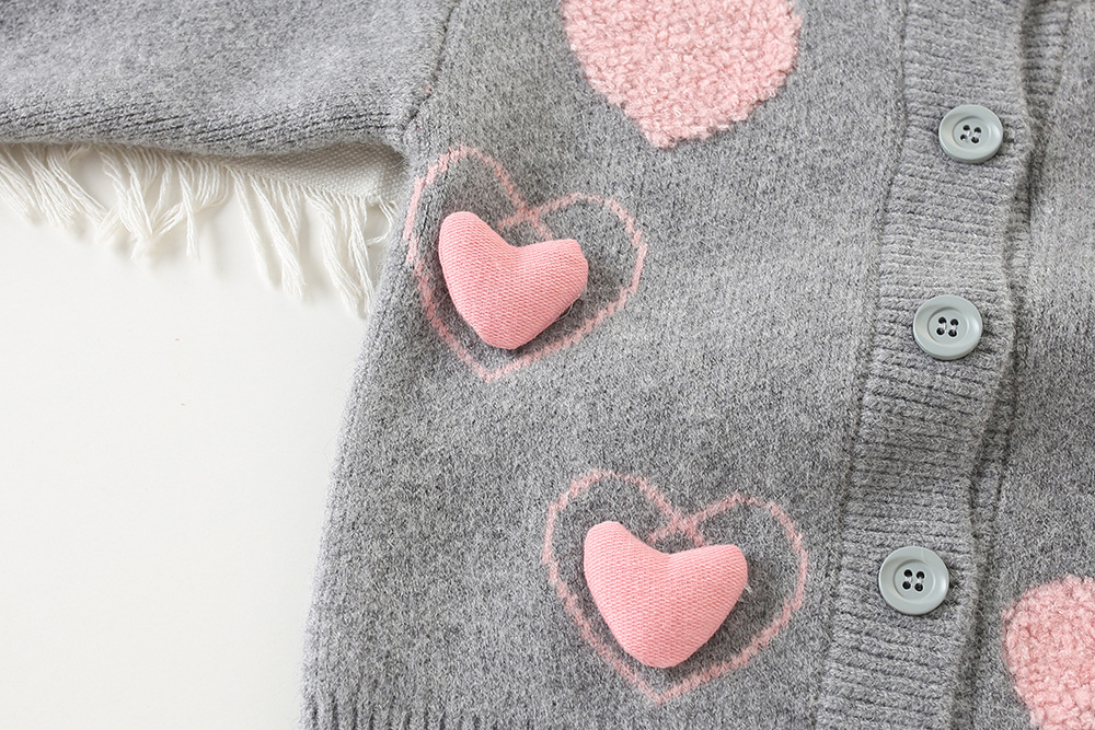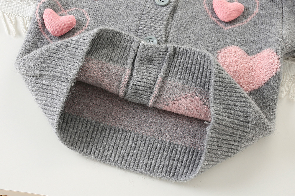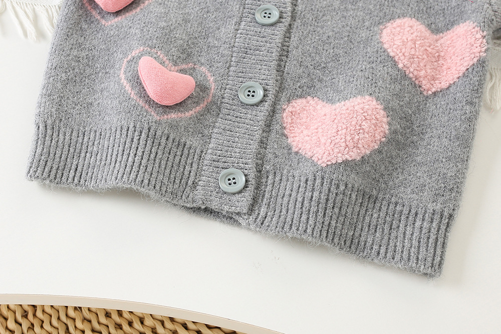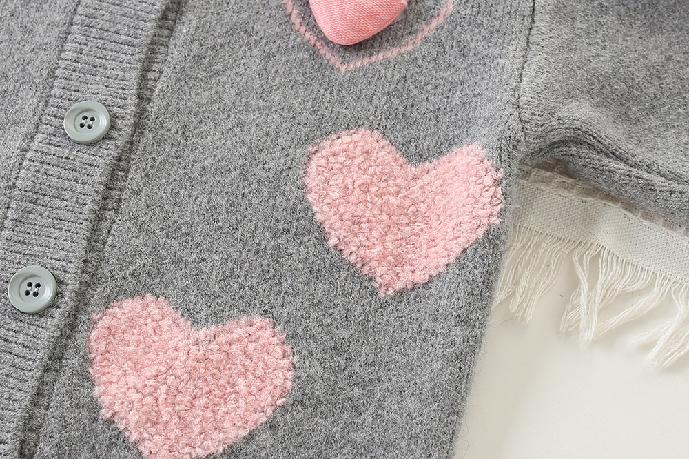 어린이 착용 소녀 니트 코트 2024 가을 새 스타일 소녀 아기 어린이 심장 스웨터 카디건 탑