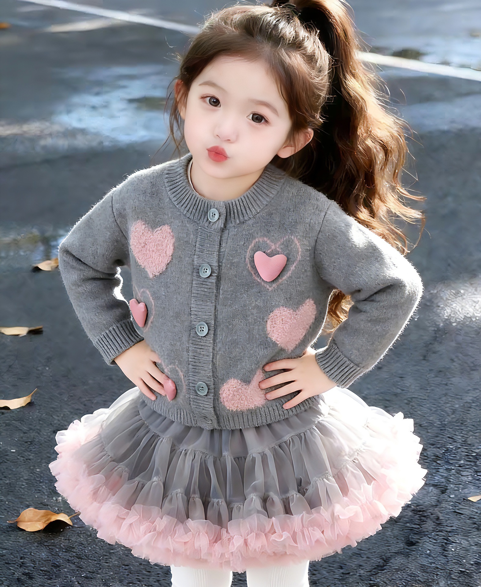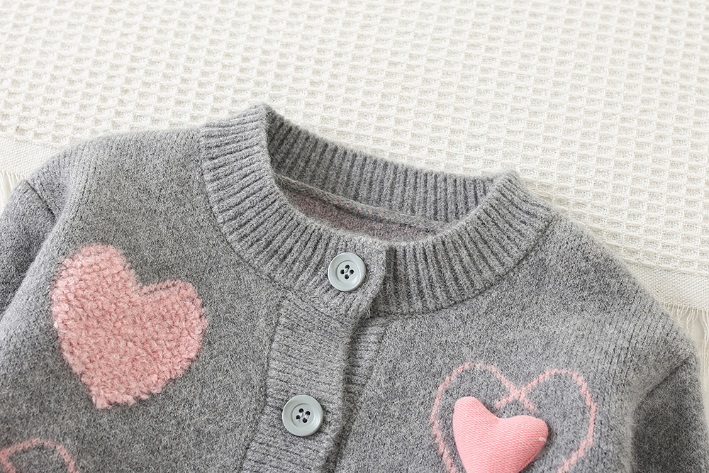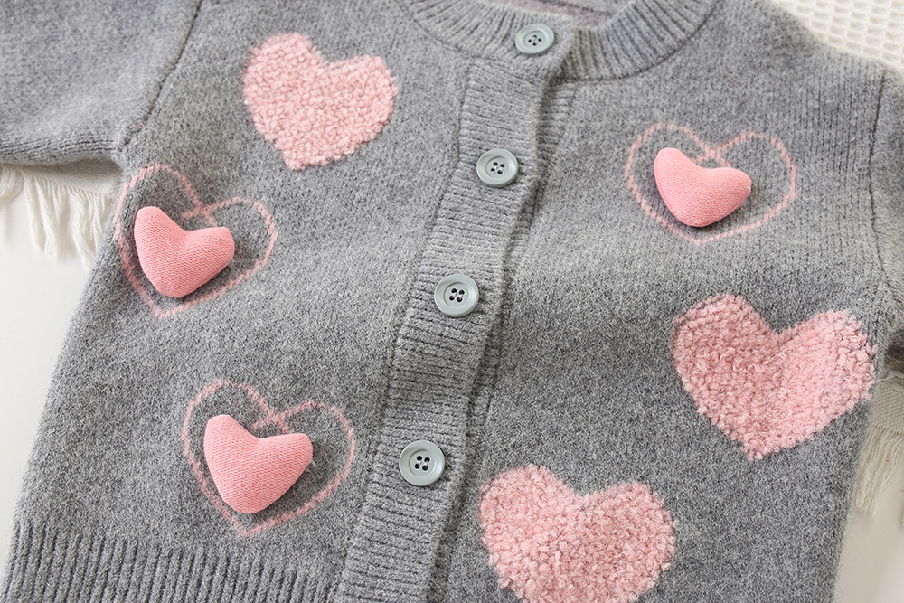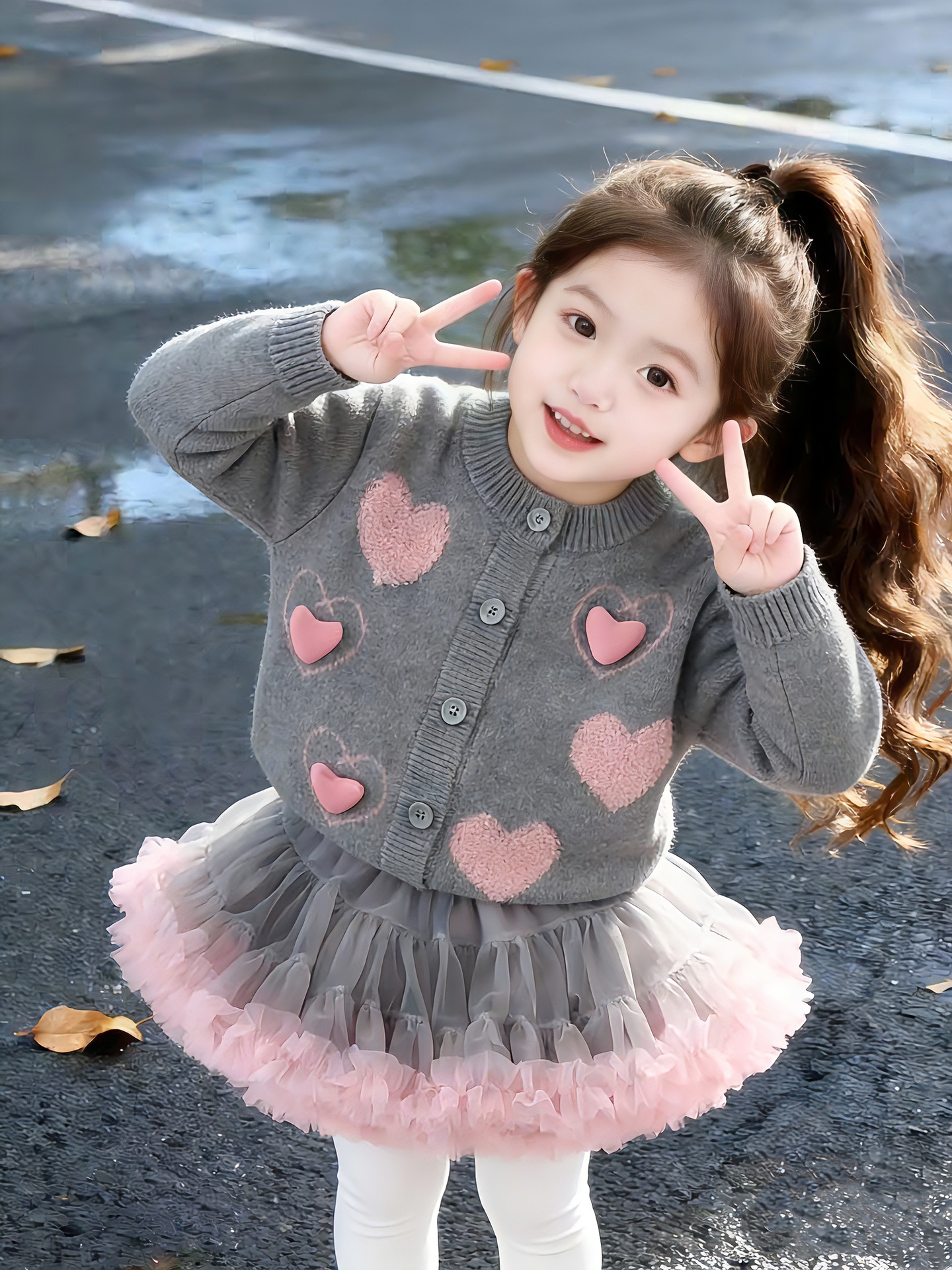 어린이 착용 소녀 니트 코트 2024 가을 새 스타일 소녀 아기 어린이 심장 스웨터 카디건 탑