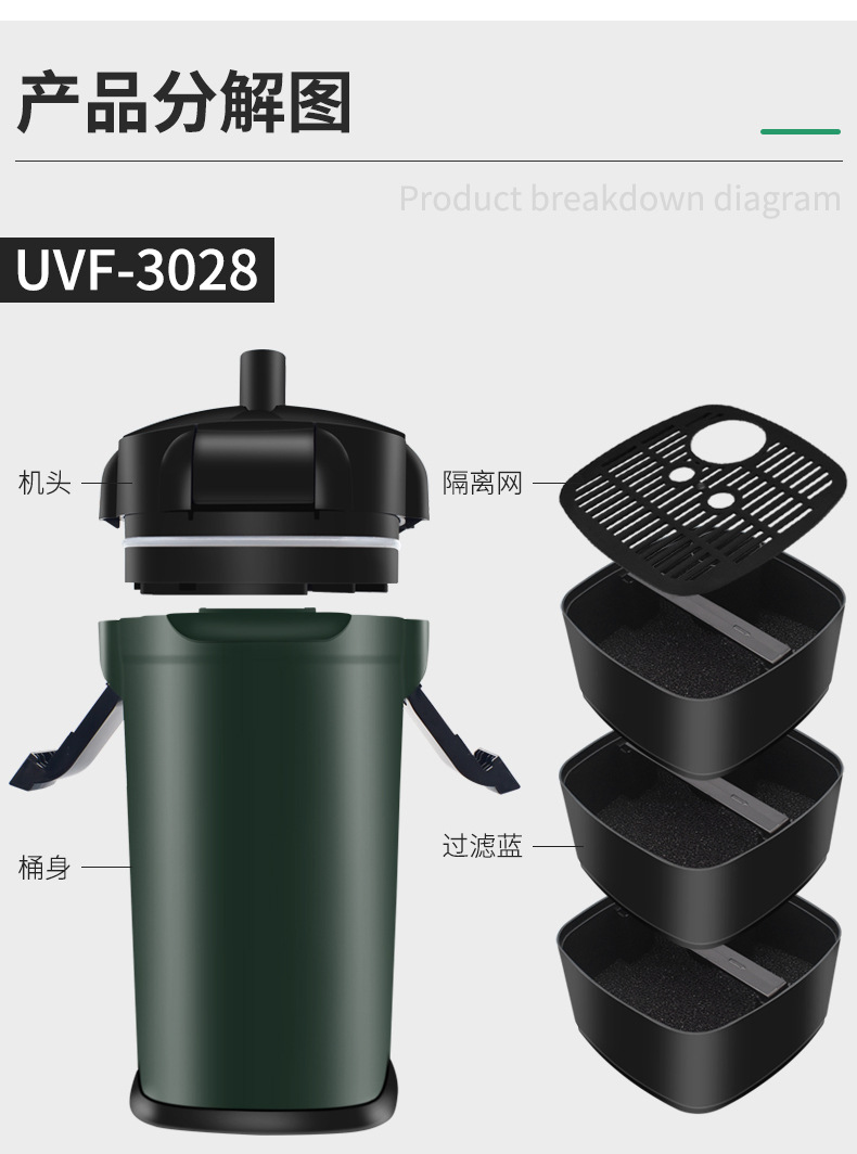 • UVF-3028 실린더 외부 필터 진한 녹색