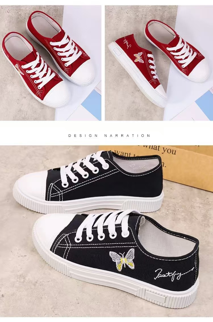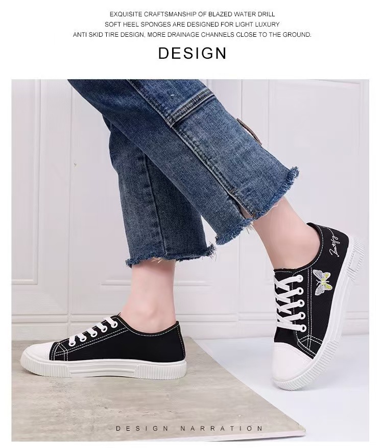 2024 봄과 가을 폭발 여학생 캔버스 캐주얼 올매치 작은 블랙 신발 한국 스타일 유행 여성 신발 소프트 솔스토어 가기