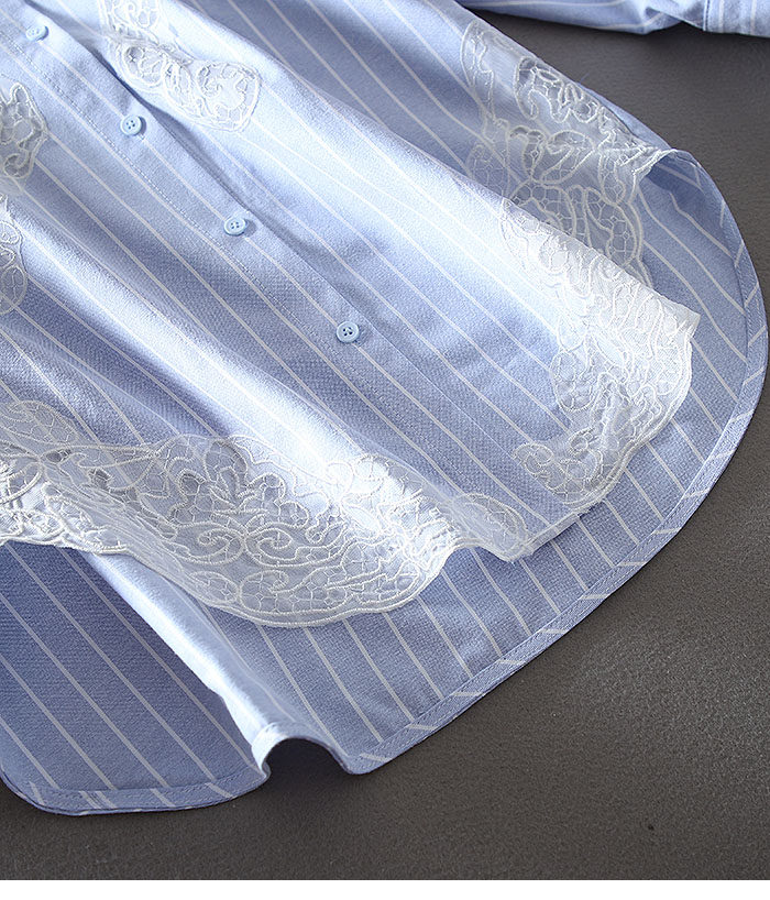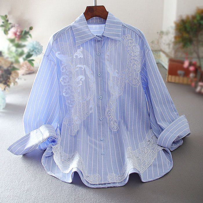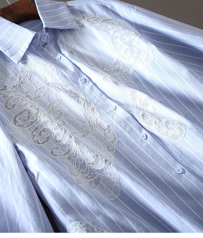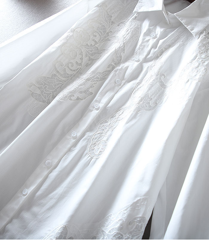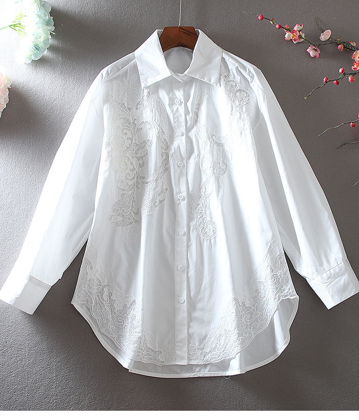 유럽 역 패션 무거운 자수 중공 하이 엔드 센스 루즈 플러스 사이즈 긴 소매 엘 중간 길이의 셔츠 블라우스