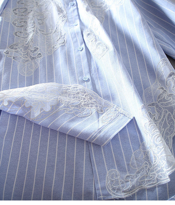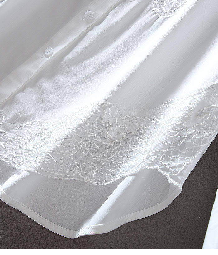유럽 역 패션 무거운 자수 중공 하이 엔드 센스 루즈 플러스 사이즈 긴 소매 엘 중간 길이의 셔츠 블라우스스토어 가기
