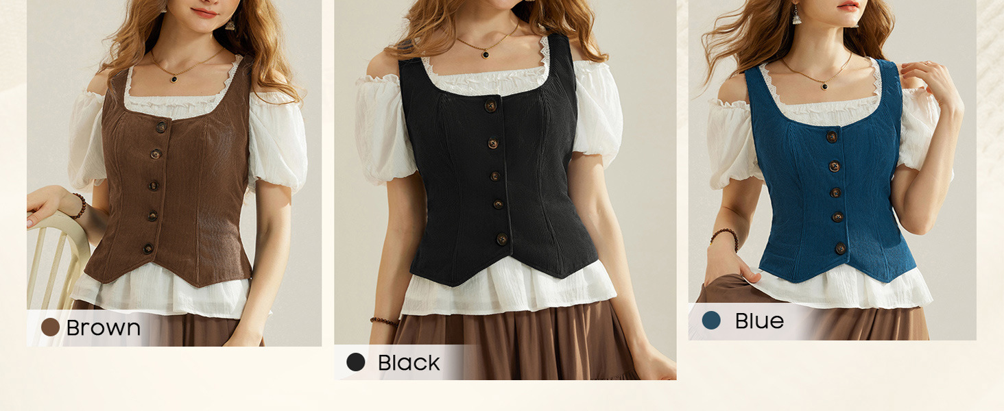 여성 국경 르네상스 코르셋 빈티지 버클 코듀로이 해적 조끼스토어 가기
