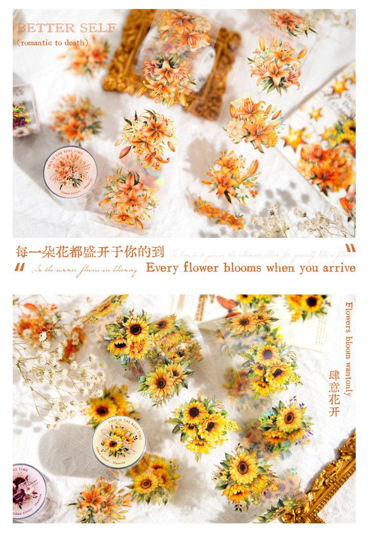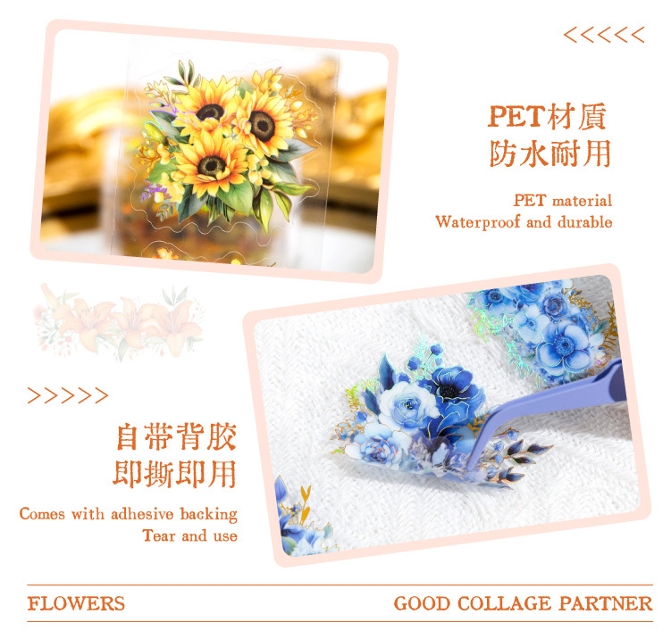 향긋한 꽃 가게 PET 다이 컷 브론 징 테이프 빈티지 꽃 호말 꽃 로즈 모란 손 계정 장식 콜라주