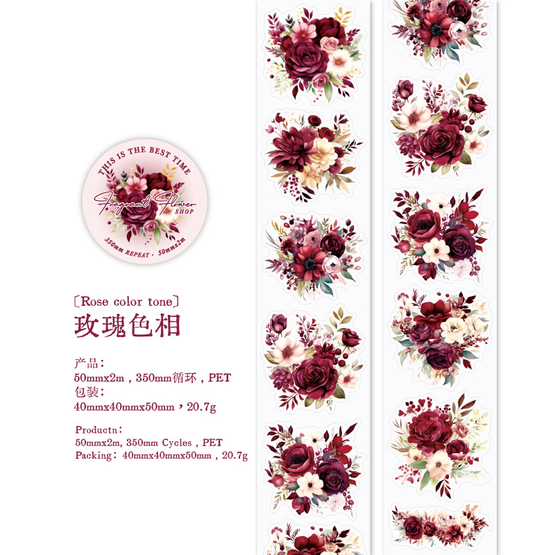 향긋한 꽃 가게 PET 다이 컷 브론 징 테이프 빈티지 꽃 호말 꽃 로즈 모란 손 계정 장식 콜라주스토어 가기