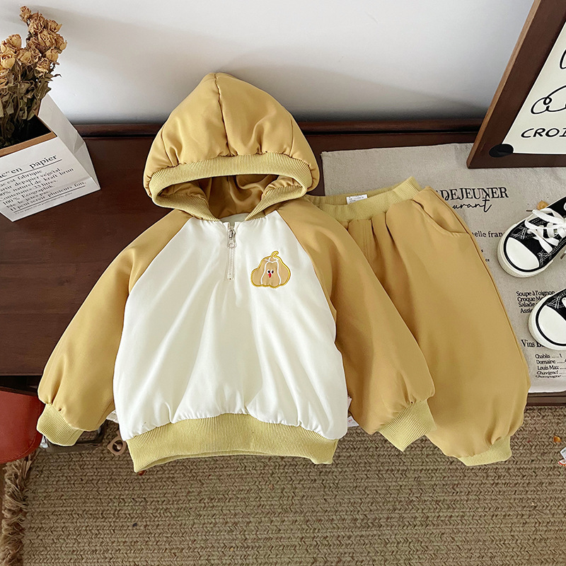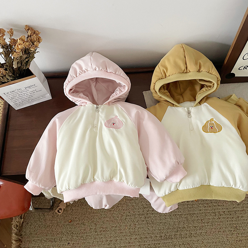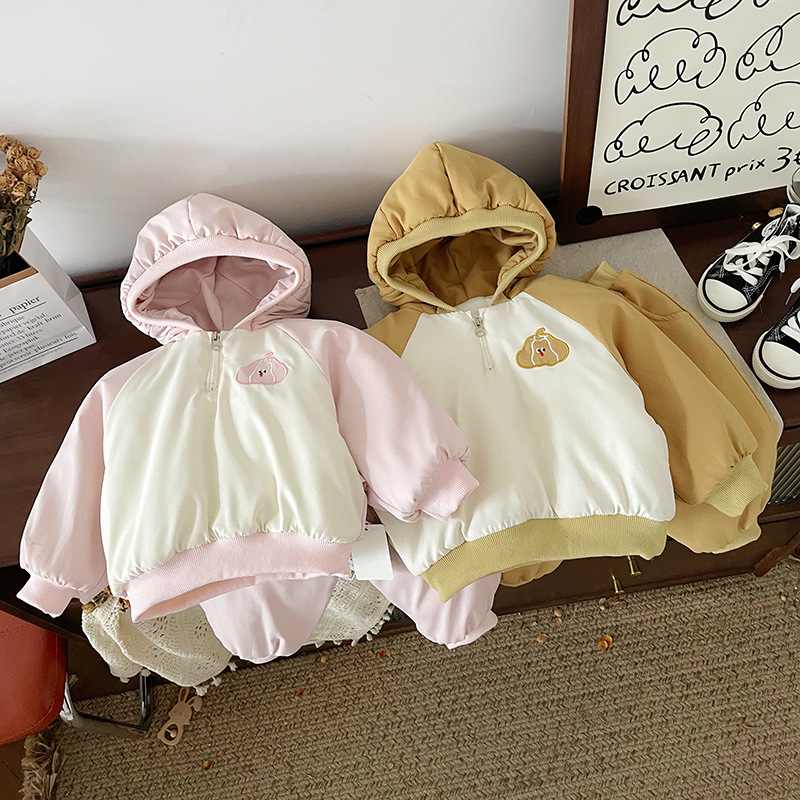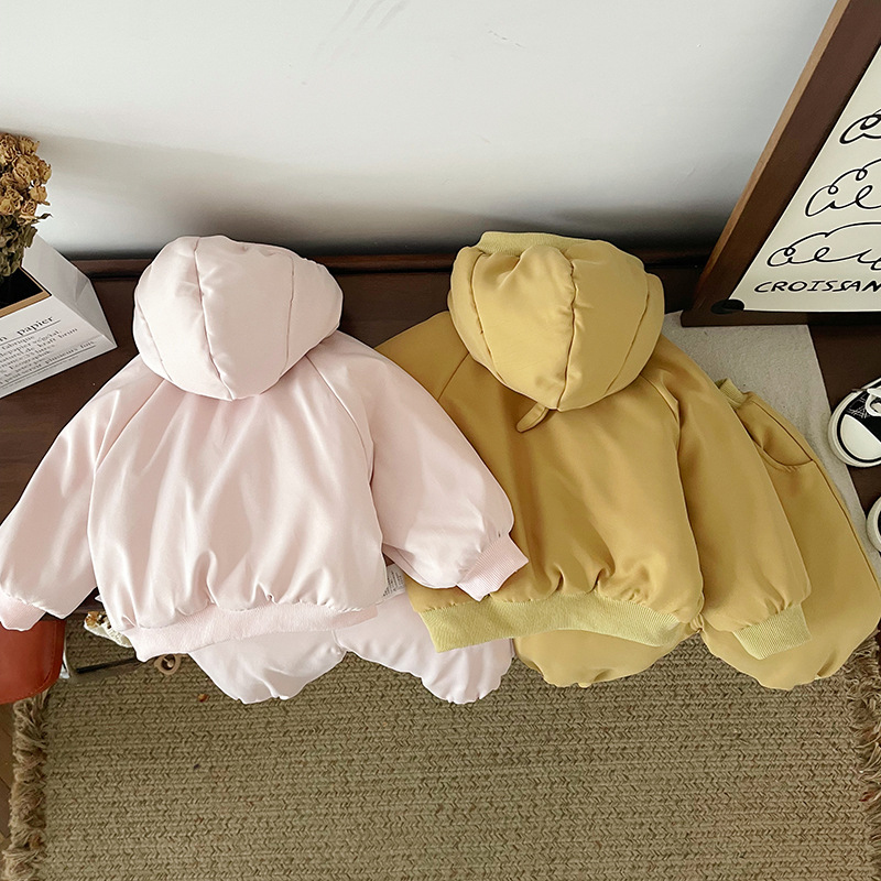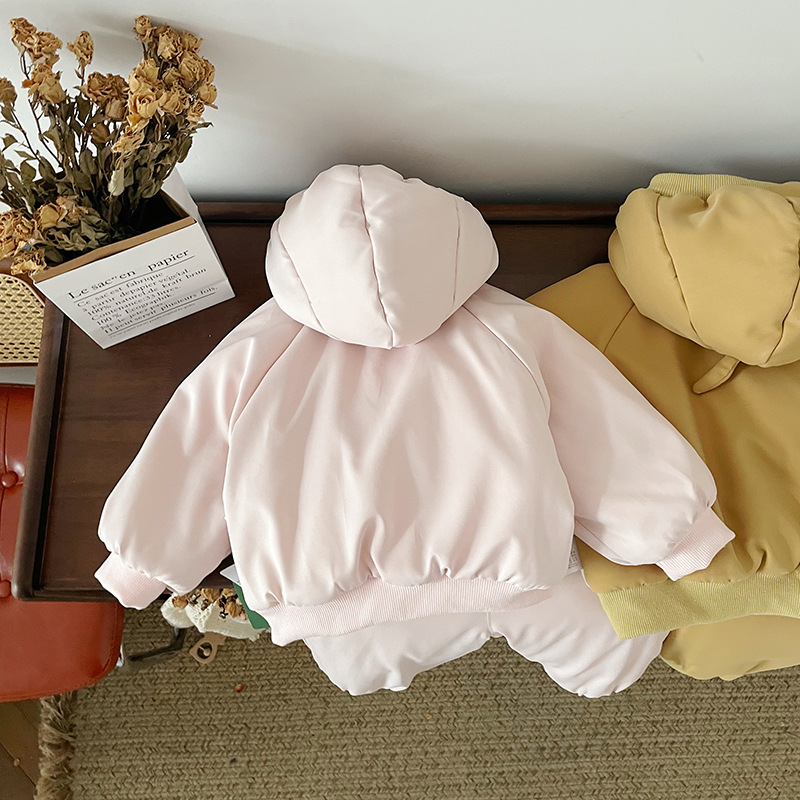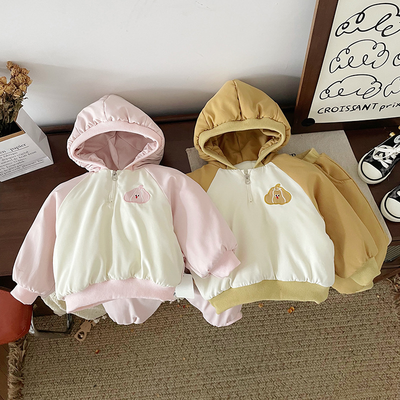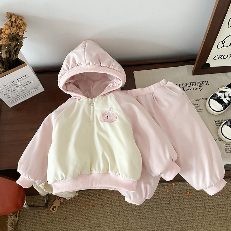 [재고] DT249729 어린이 세트 2024 가을과 겨울 새로운 두꺼운 귀여운 후드 패딩 자켓 베이비 세트