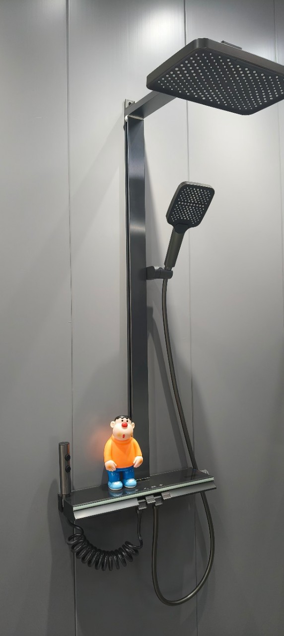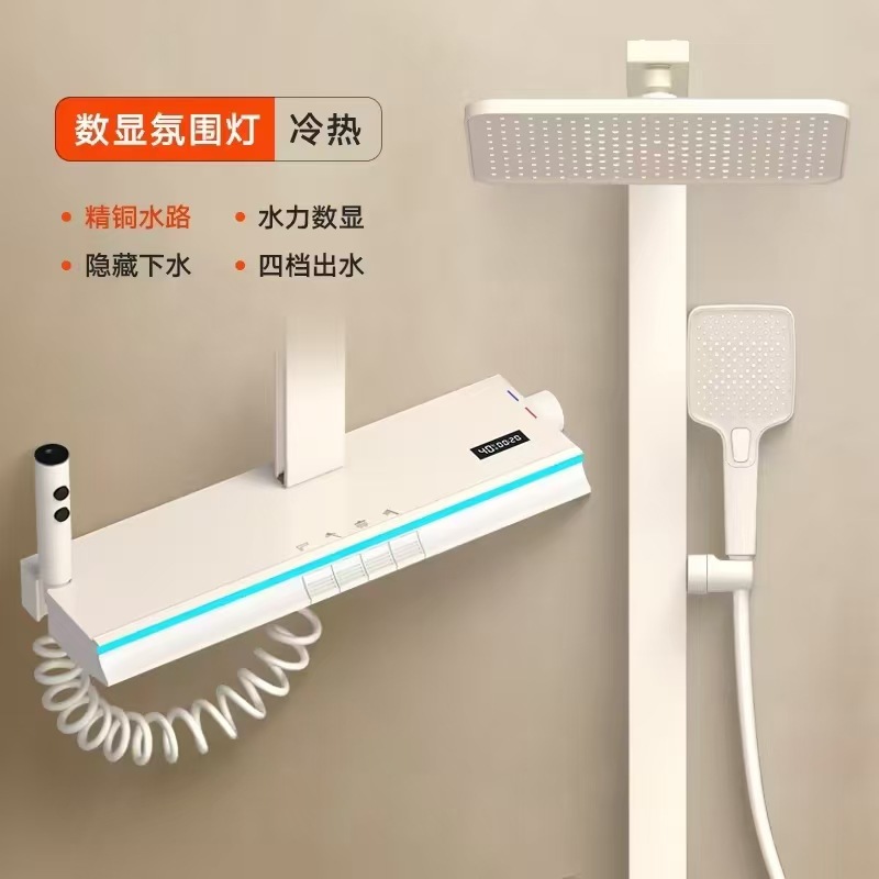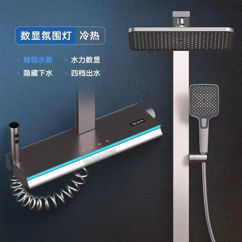 냉온수 디지털 디스플레이 샤워기 세트 가정용 순동 욕실 샤워기 회색 화장실 가압 수도꼭지