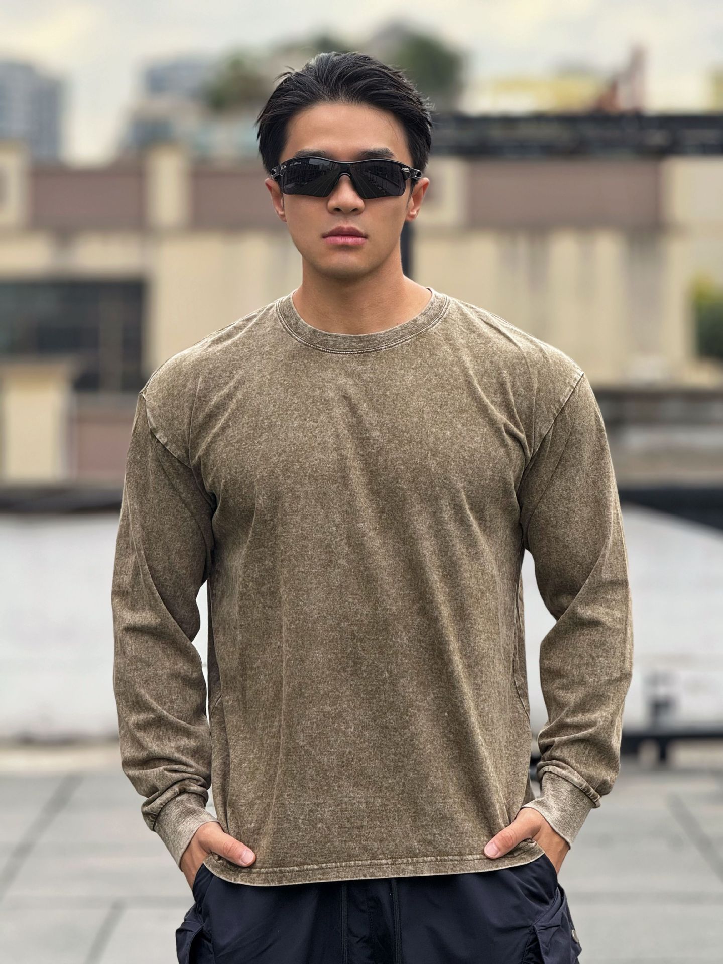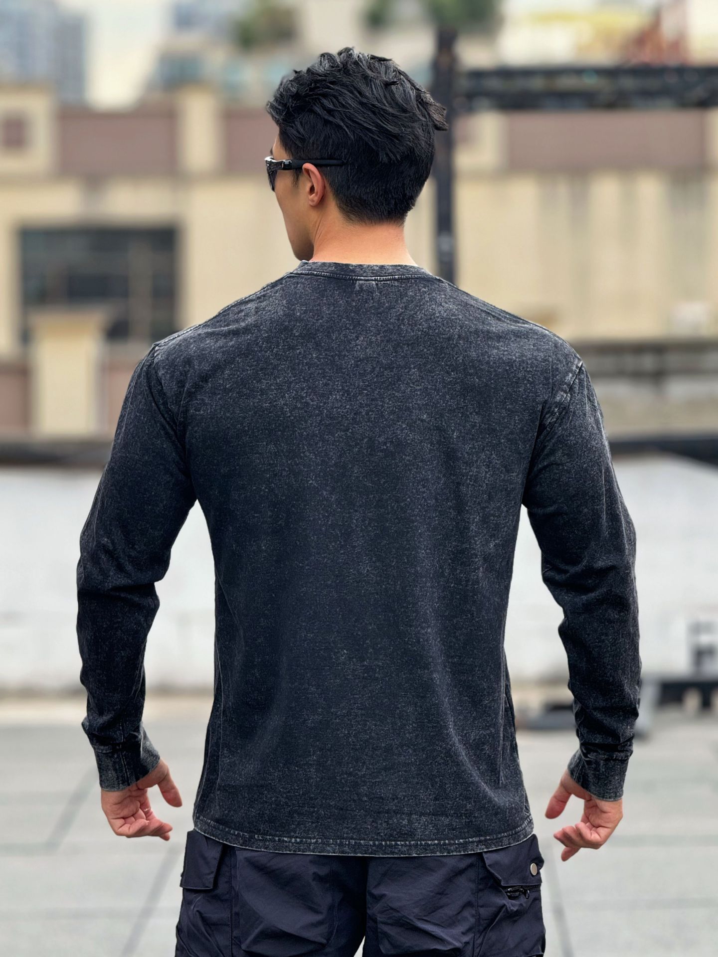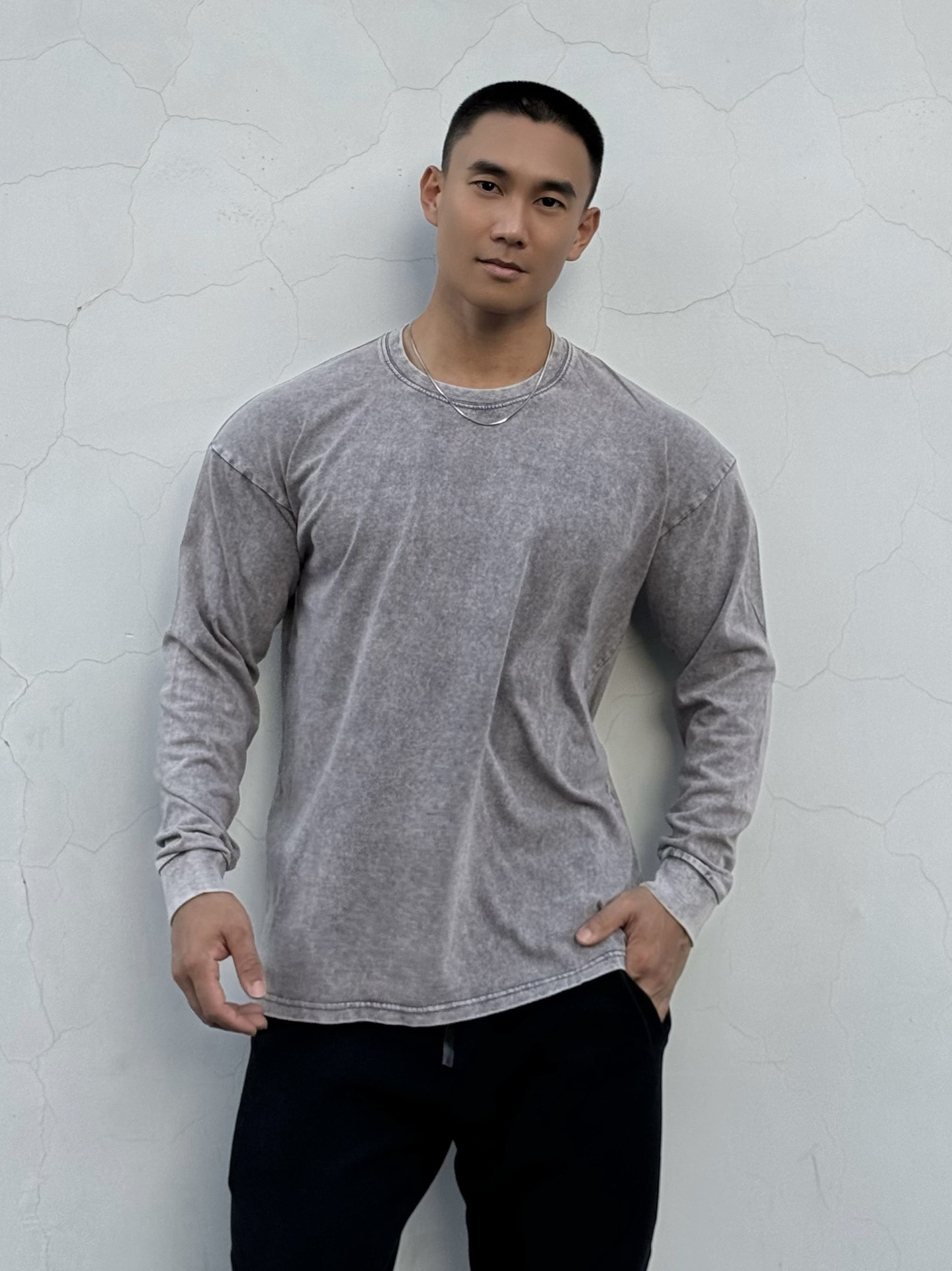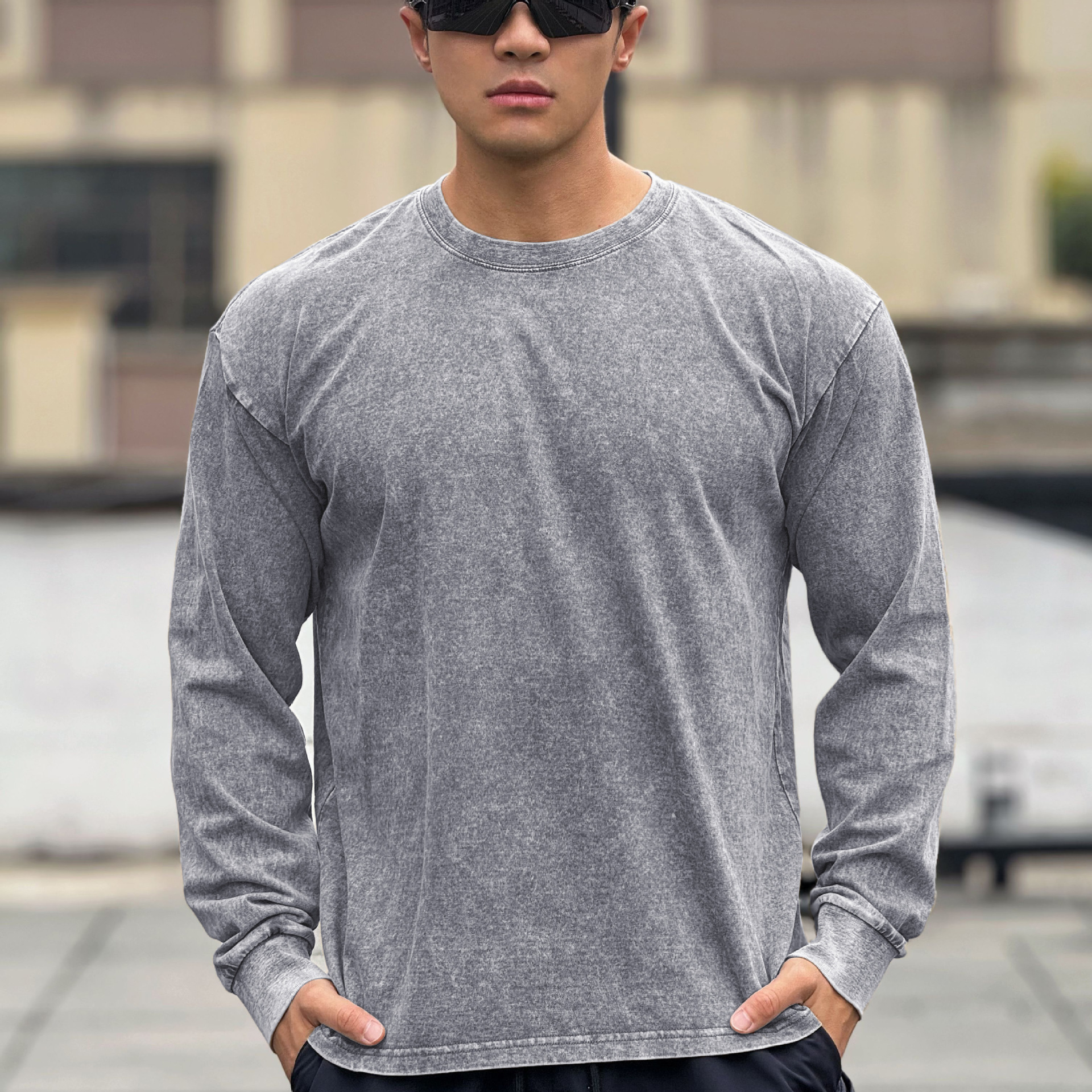 근육 스포츠 느슨한 면 피트니스 긴 소매 남자 농구 가을 달리기 훈련 세척 코튼 스포츠 티셔츠 라운드 넥스토어 가기