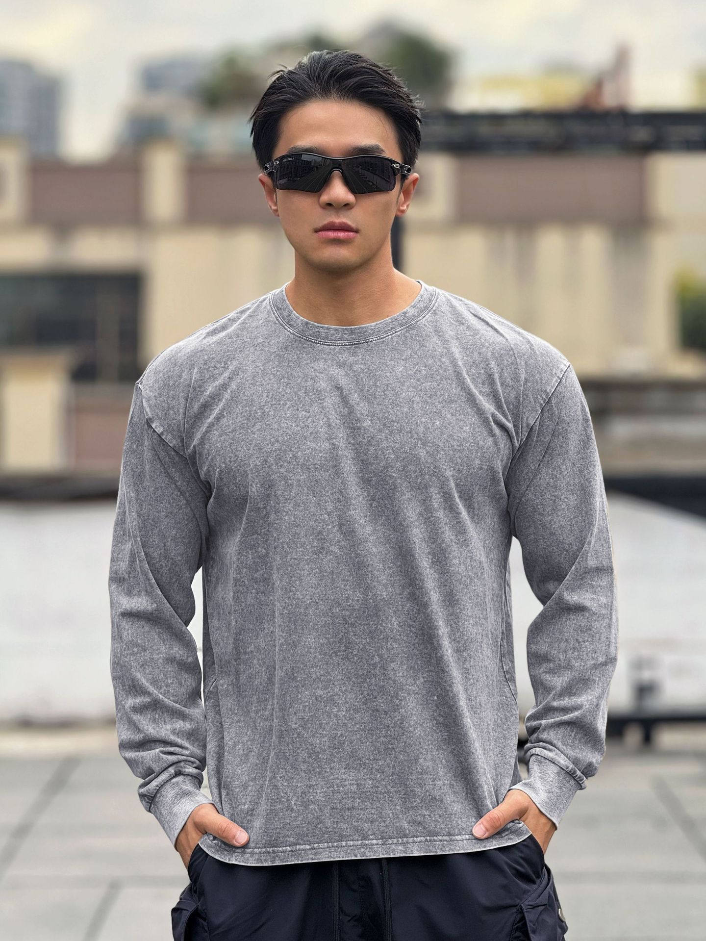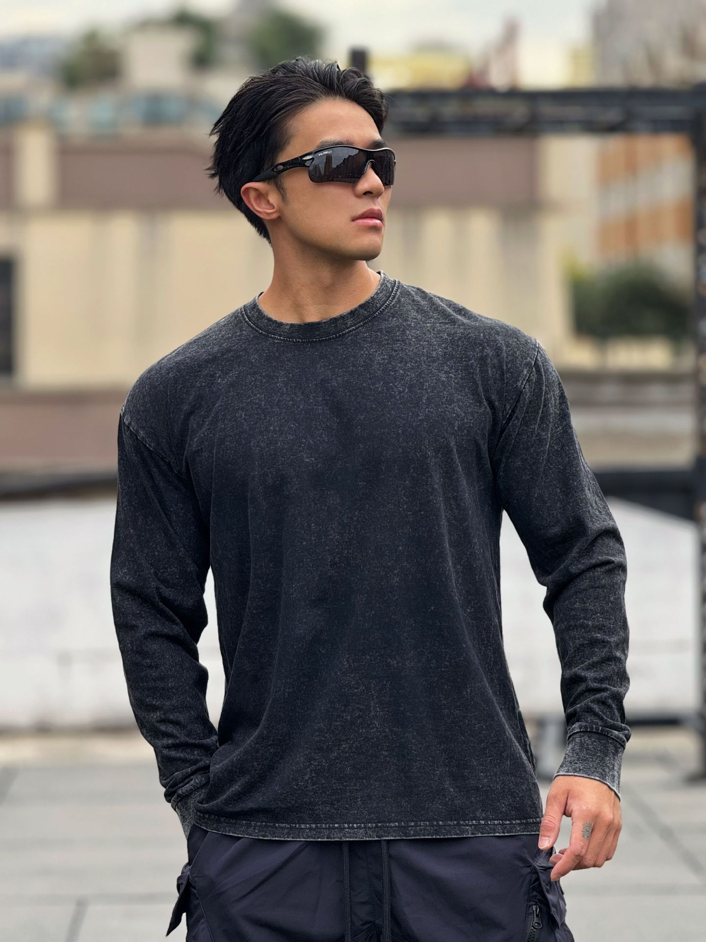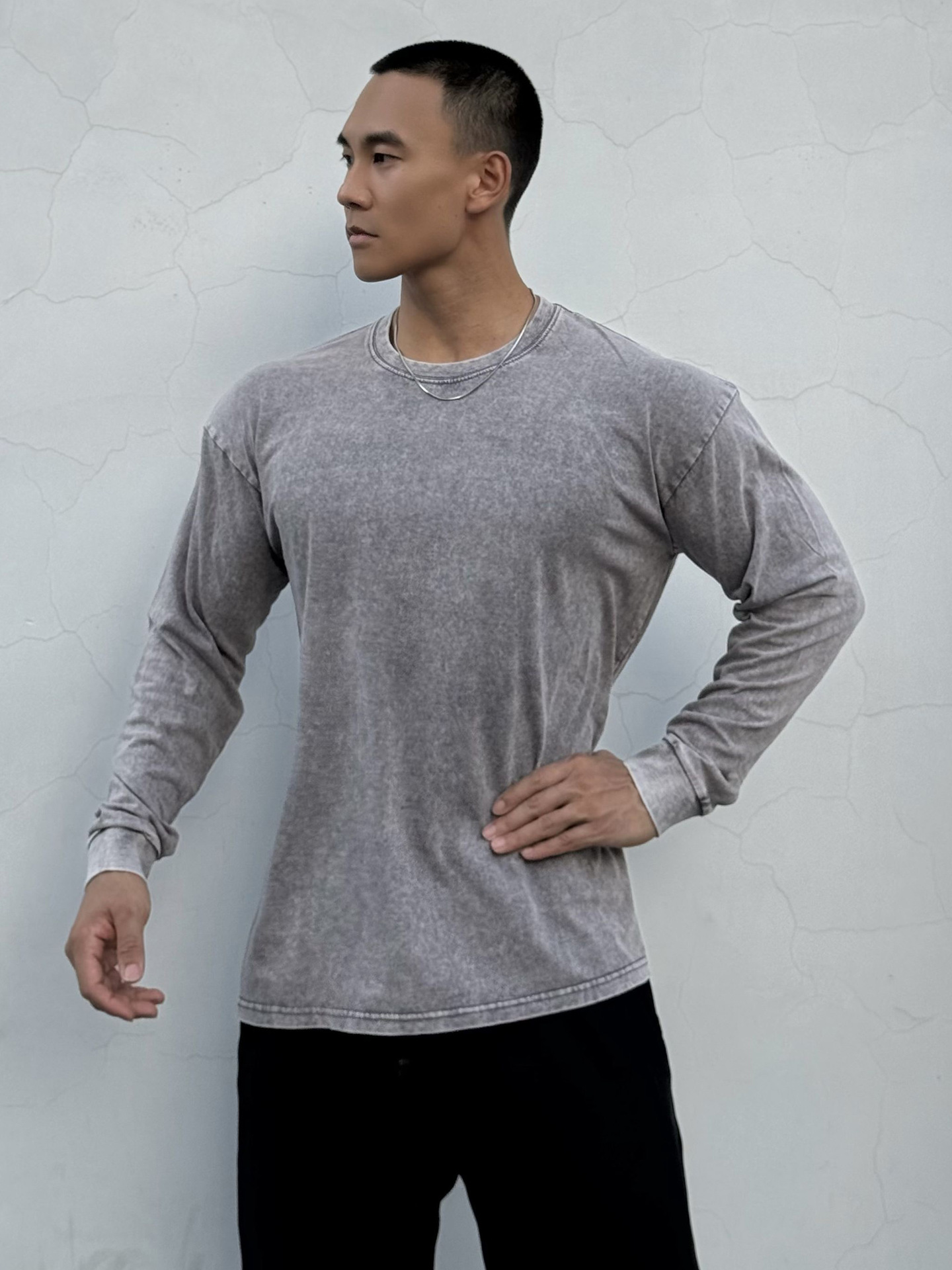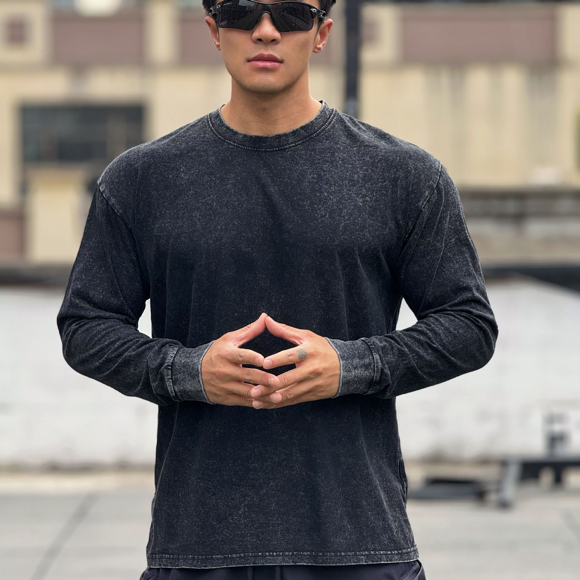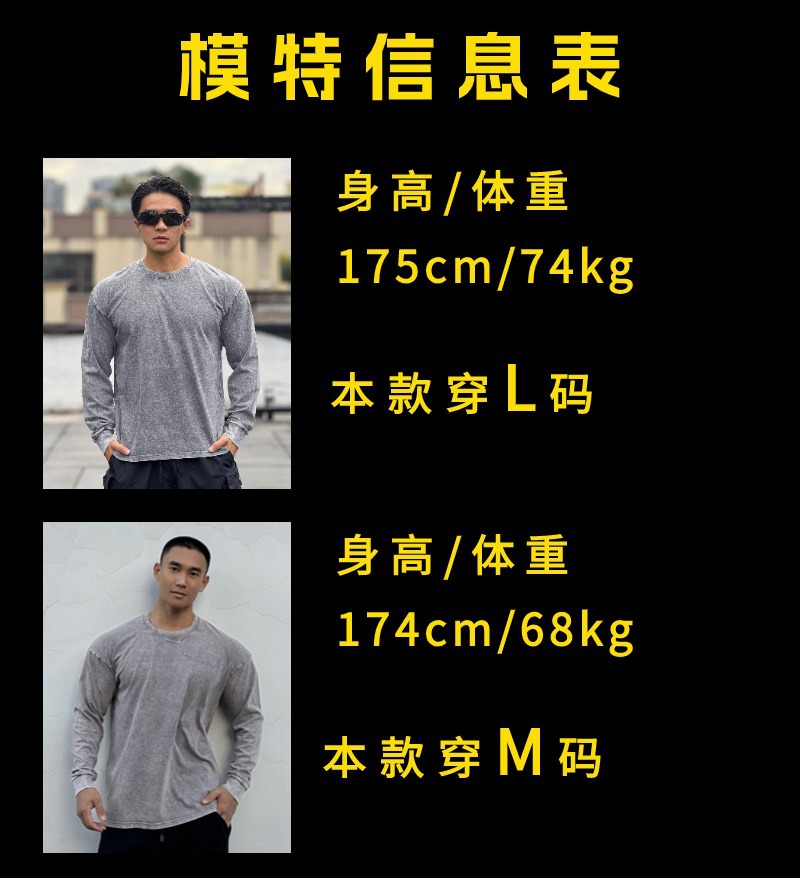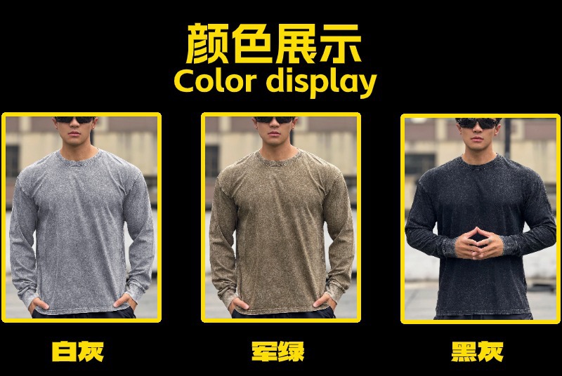 근육 스포츠 느슨한 면 피트니스 긴 소매 남자 농구 가을 달리기 훈련 세척 코튼 스포츠 티셔츠 라운드 넥