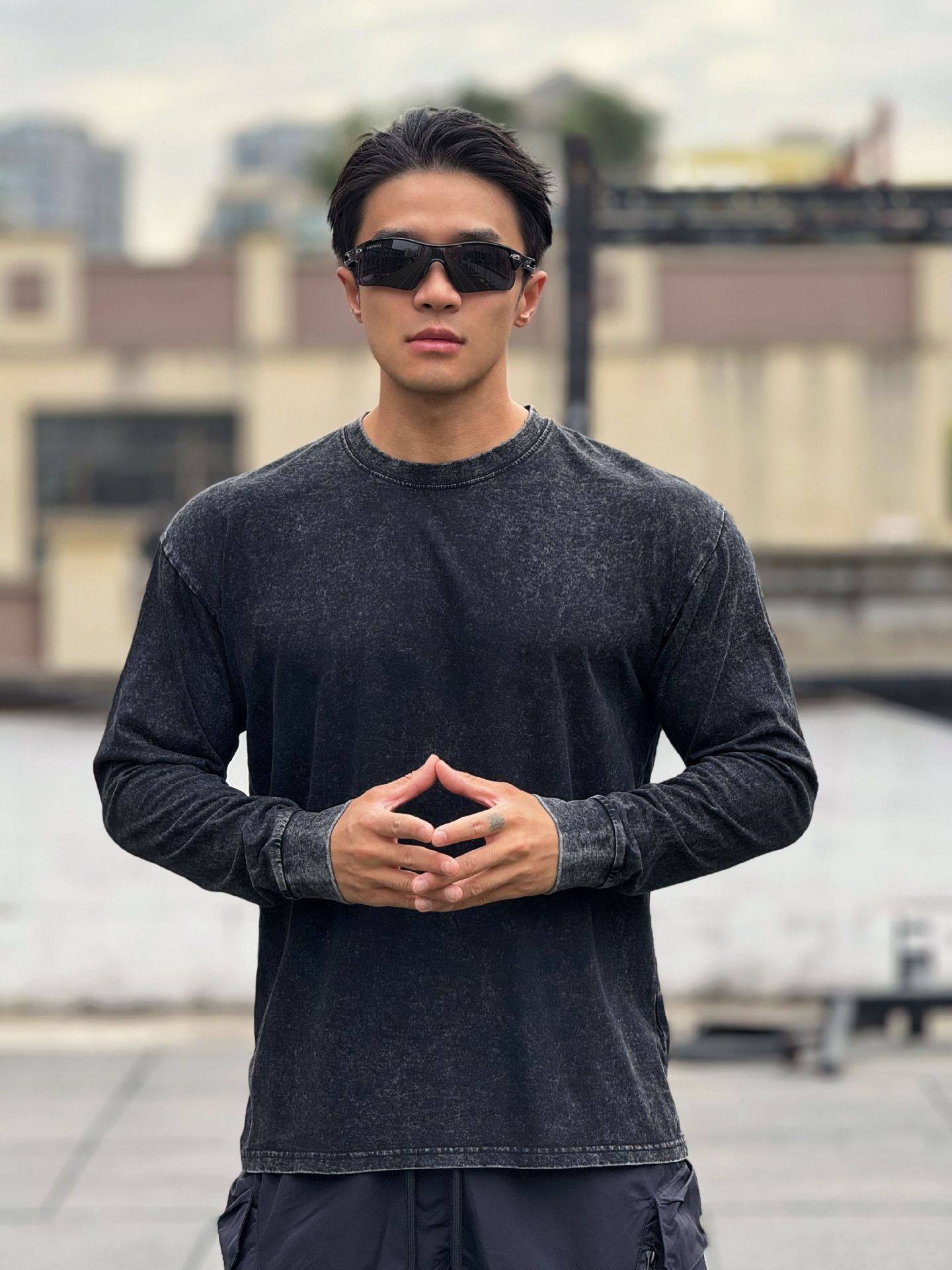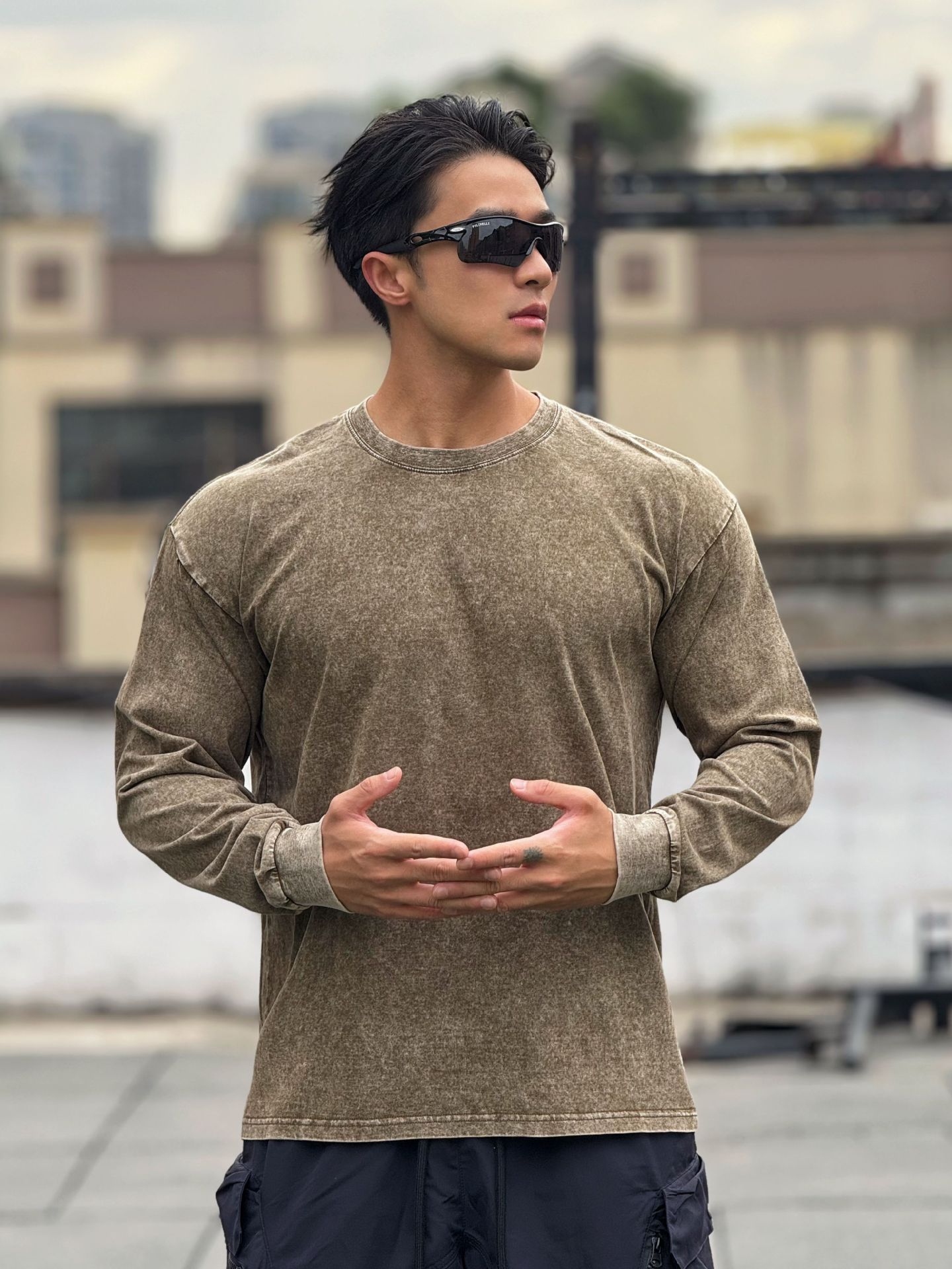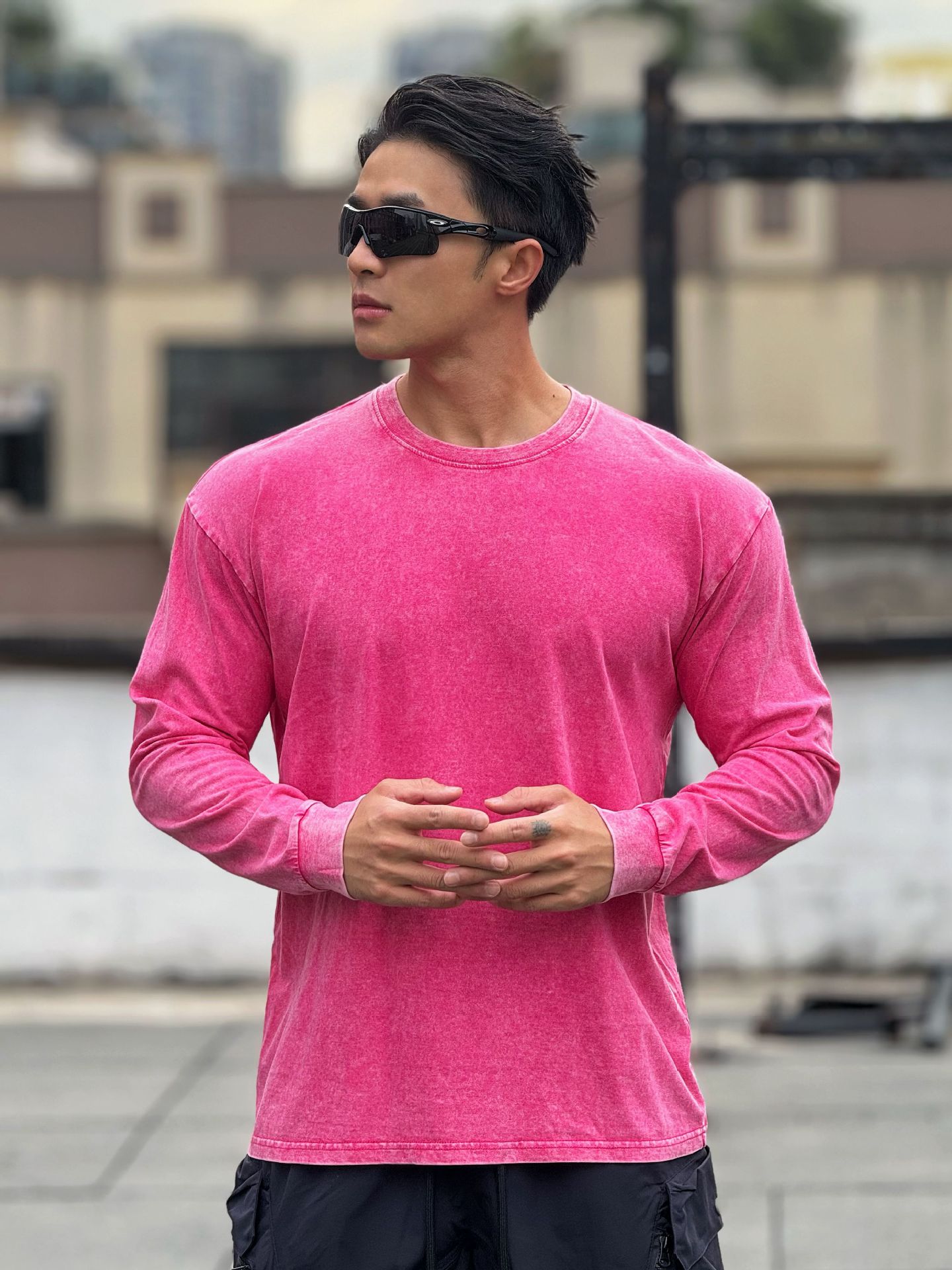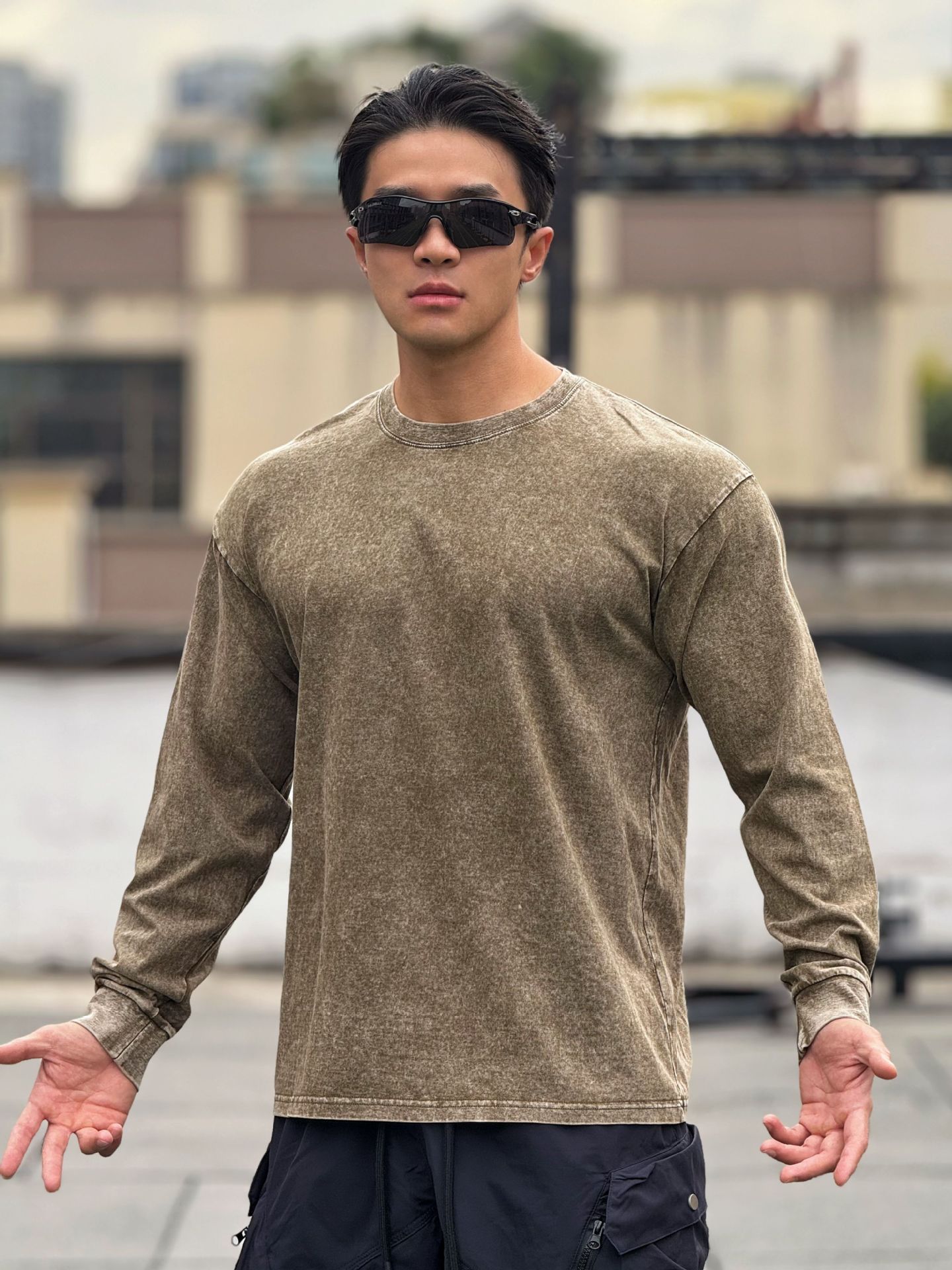 근육 스포츠 느슨한 면 피트니스 긴 소매 남자 농구 가을 달리기 훈련 세척 코튼 스포츠 티셔츠 라운드 넥