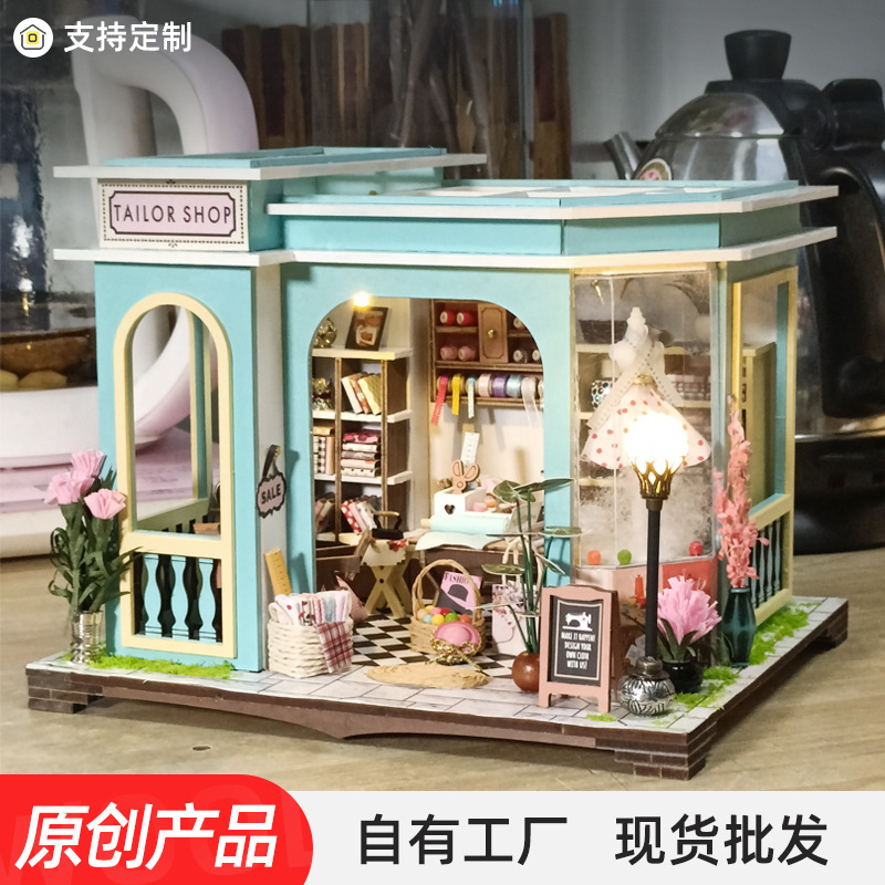 크리 에이 티브 수제 diy 캐빈 별이 빛나는 하늘 꽃 룸 미니 건물 모델 장식품 나무 조립 장난감 크리스마스 선물스토어 가기