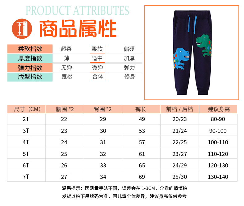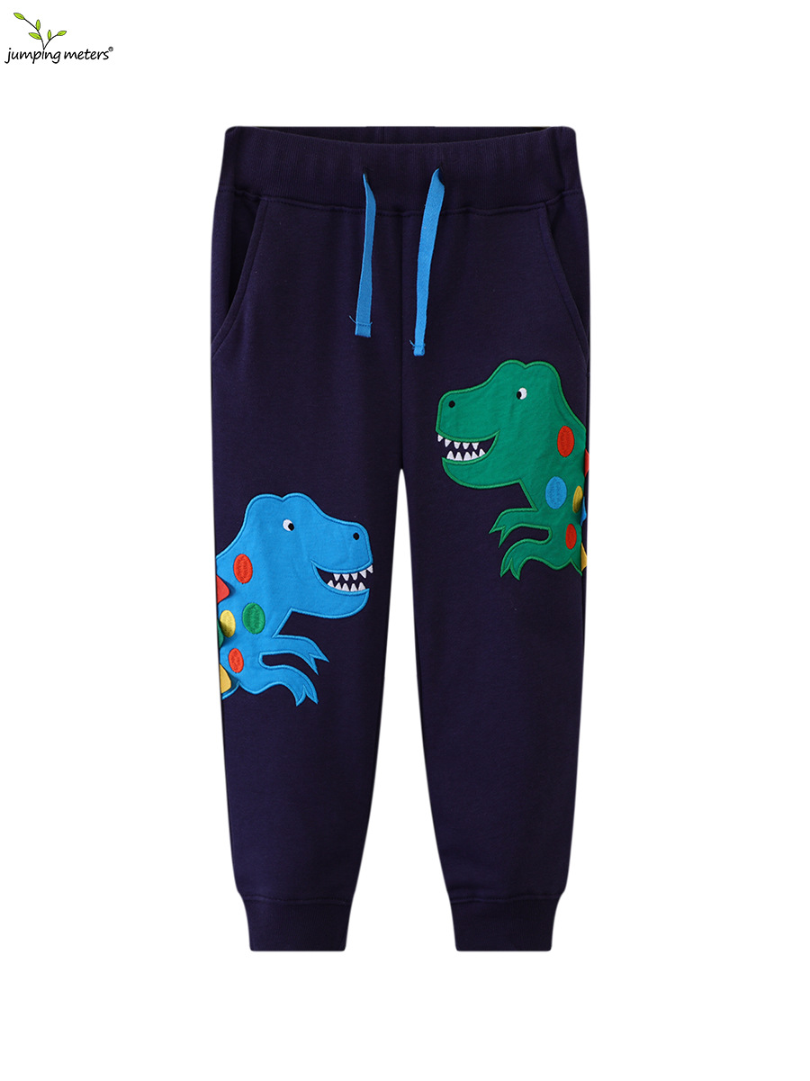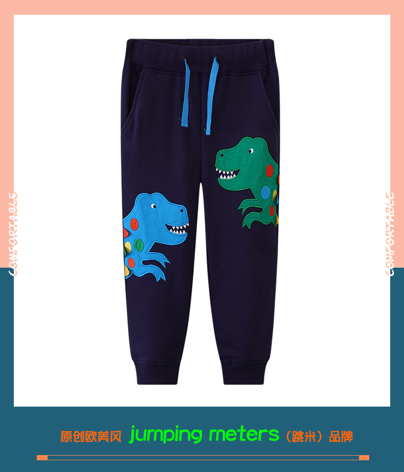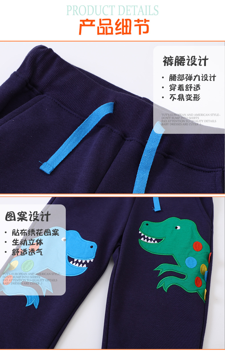 26年欧美儿童运动裤春秋男童深蓝色恐龙图案长裤中小童卫裤学生裤