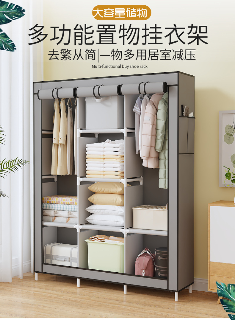 남아메리카 간단한 130 다기능 방진 천 옷장 홈 침실 옷 캐비닛 조립 보관 캐비닛스토어 가기