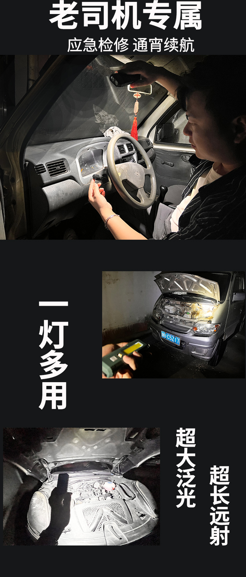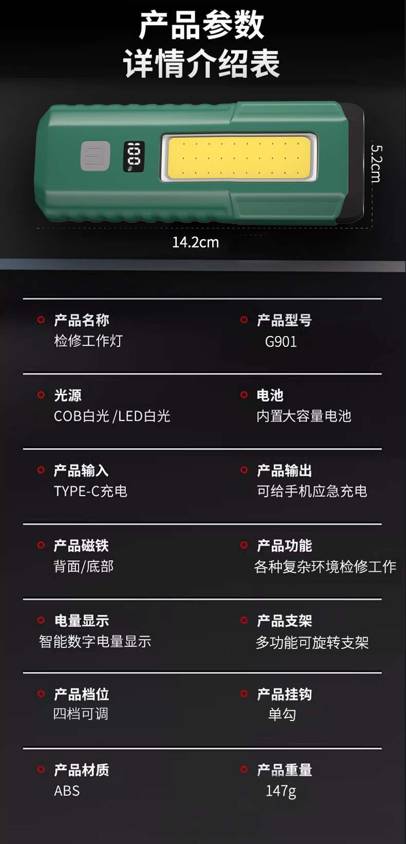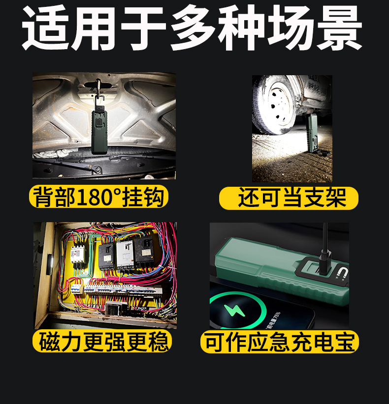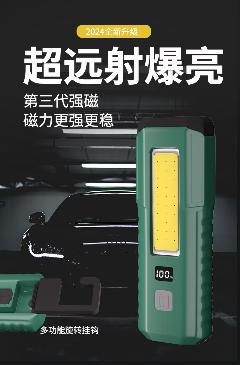 功能 :磁吸带挂钩汽修维修工作灯