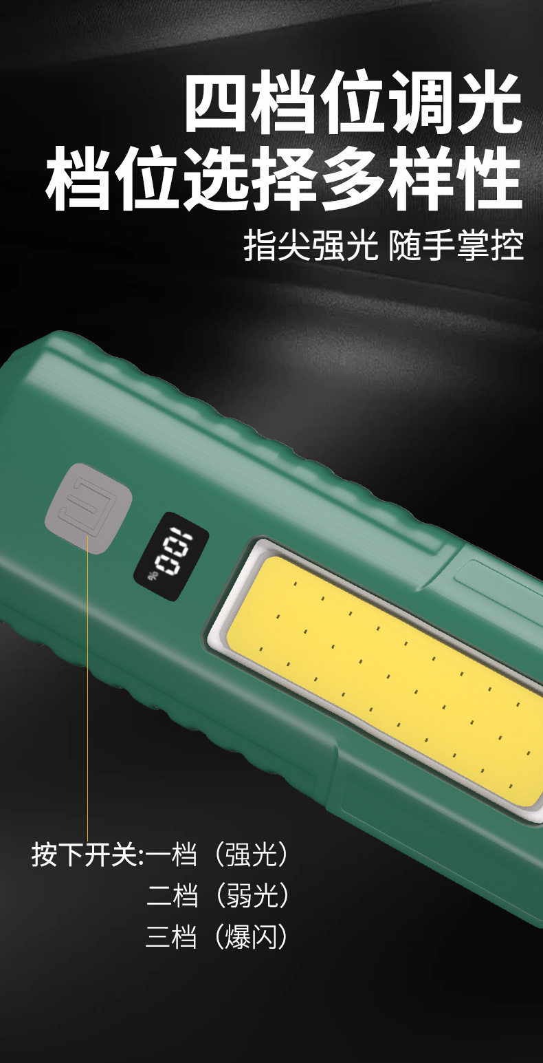 档位 :强光、弱光、爆闪、COB工作灯