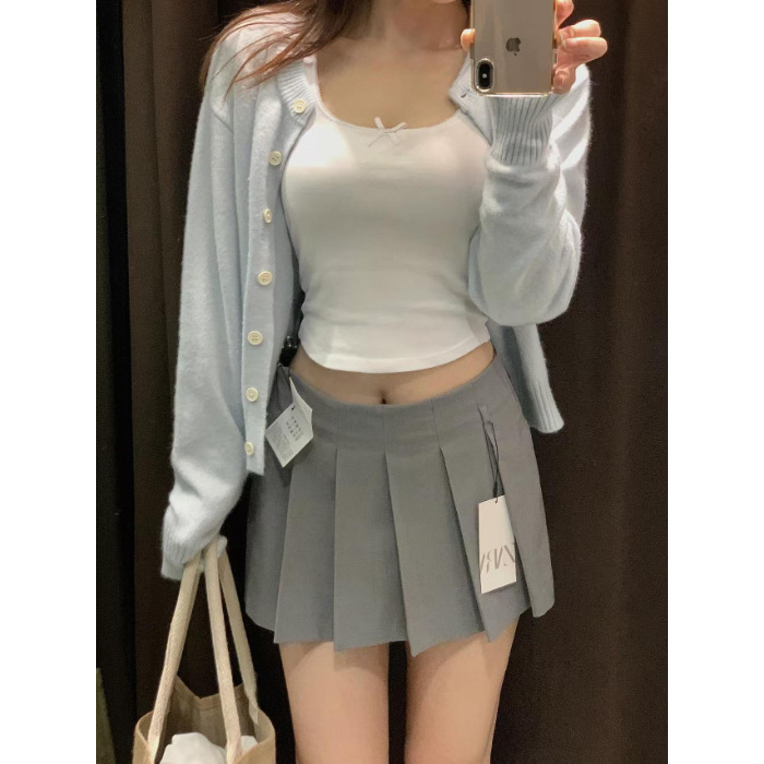 2024 새로운 바다 소금 블루 니트 스웨터 재킷 카디건 여자 이른 봄 가을 올 매치 쇼트 탑스토어 가기