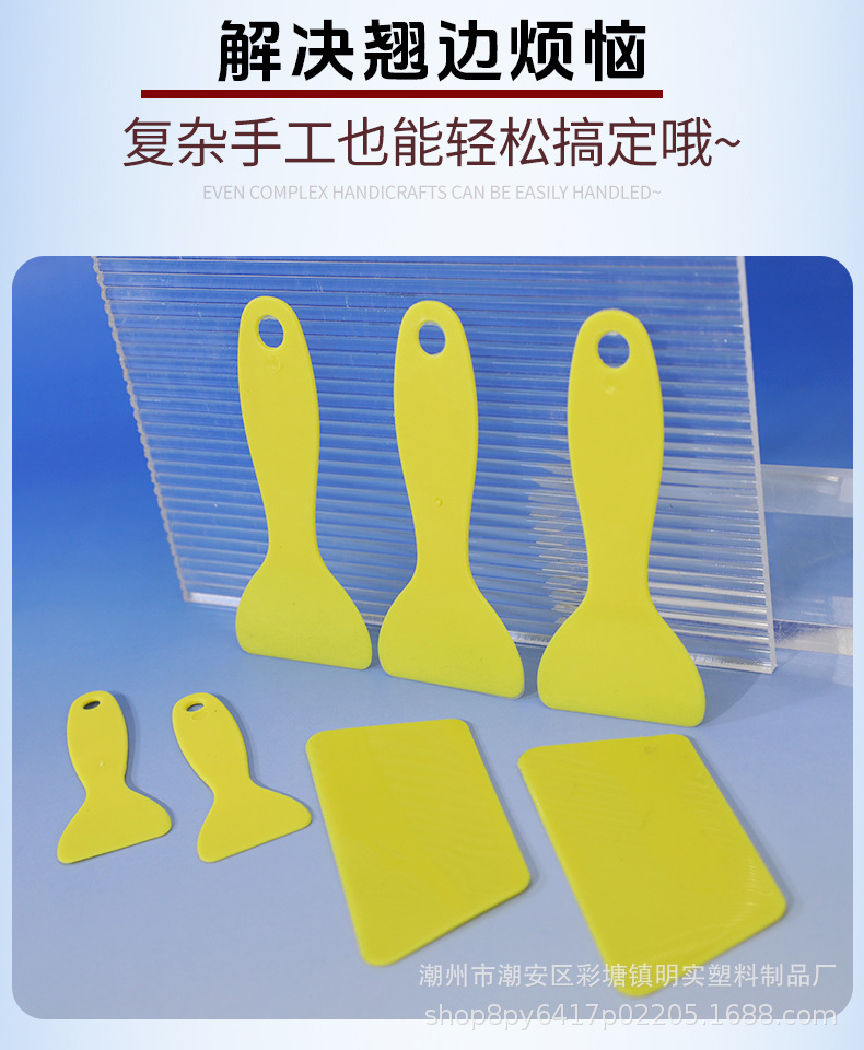꼬임 방지 특수 플라스틱 스크레이퍼 광고 벽 유리 필름 긁힘 방지 플라스틱 스크레이퍼 노란색 사다리꼴 스크레이퍼