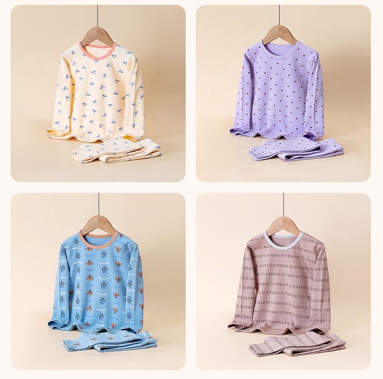Y 가을 겨울 신상 아동용 가을옷 세트 남아 순면 홈웨어 세트 여아 보온 속옷