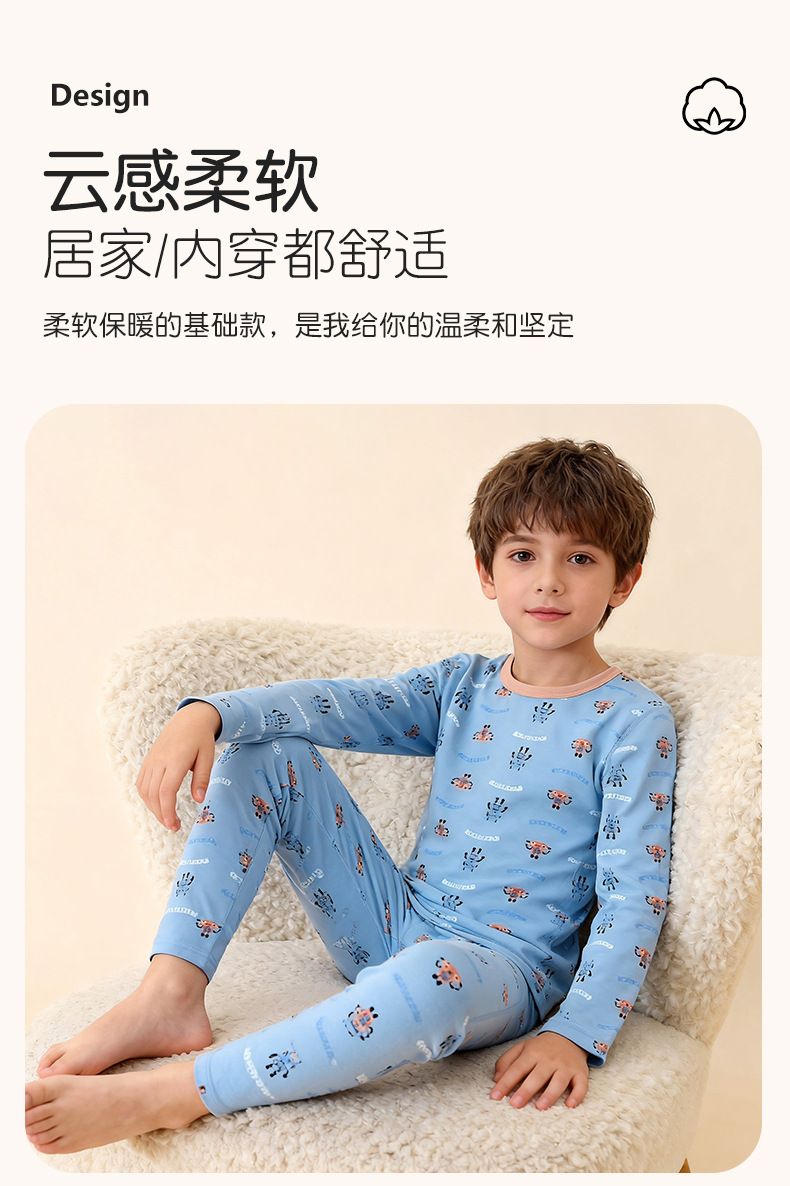 Y 가을 겨울 신상 아동용 가을옷 세트 남아 순면 홈웨어 세트 여아 보온 속옷스토어 가기
