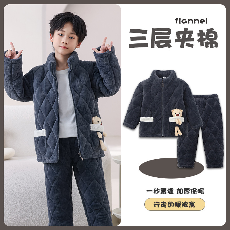 소녀와 소녀를위한 겨울 어린이 플란넬 잠옷 3 층 퀼트 소년과 대형 소년의 산호 양털 홈 옷스토어 가기