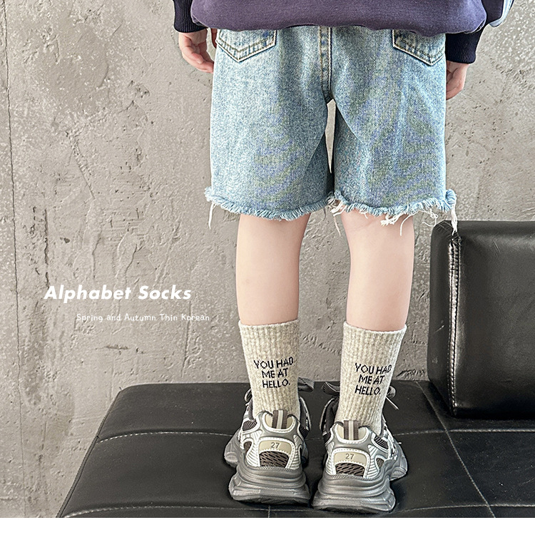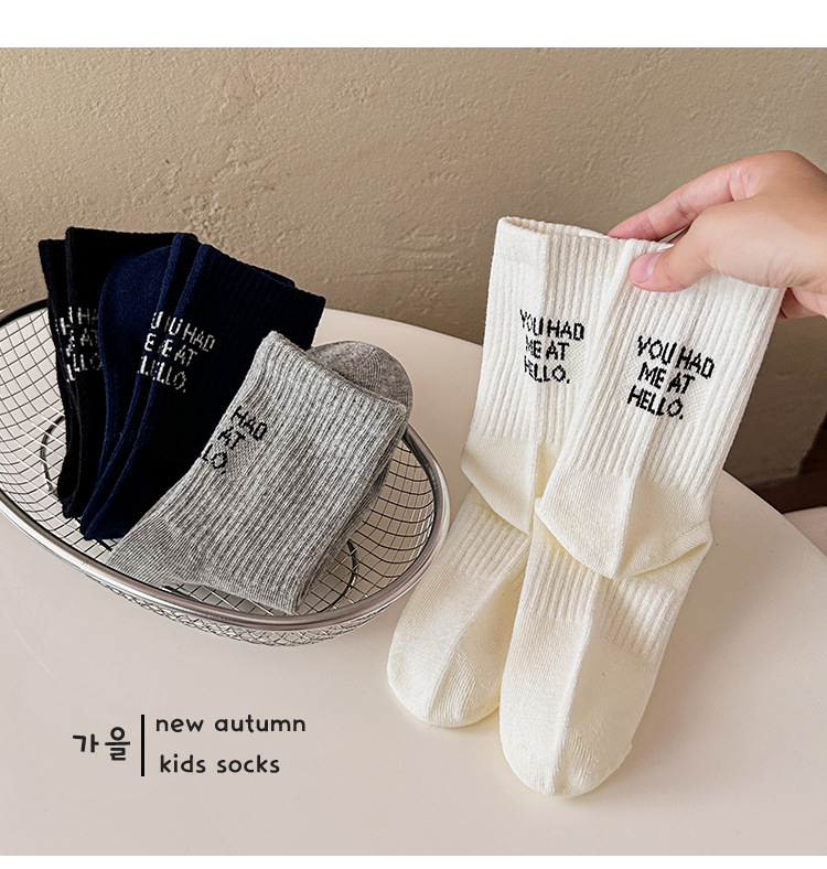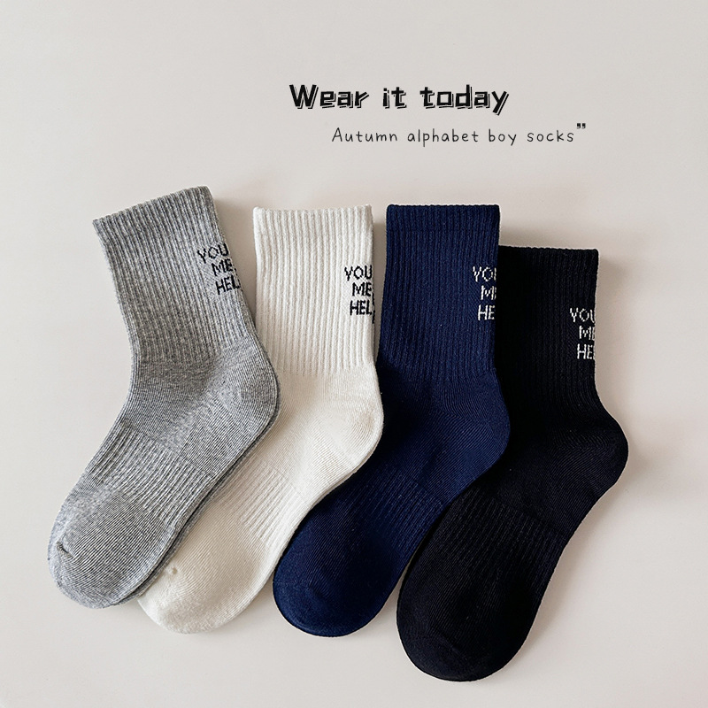 2025년 신상 남아 양말 A급 면 가을 스포츠 트렌디 아동 양말 레터링 한국 스타일 중목 양말 긴 양말 중대형 아동용