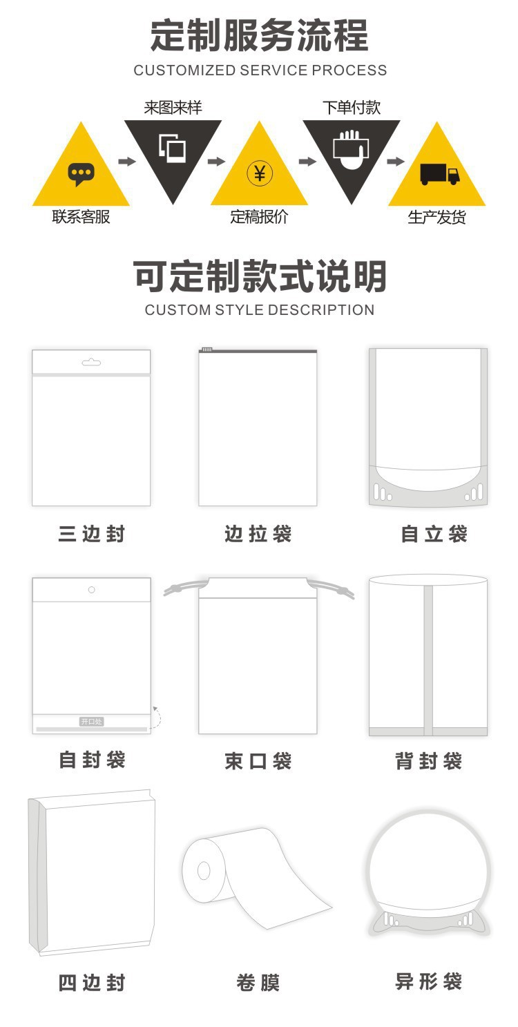 뼈 가방 투명 컬러 인쇄 플라스틱 포장 도매 지퍼 가방 싱글 및 더블 자체 밀봉 가방 의류 보관 서리 백