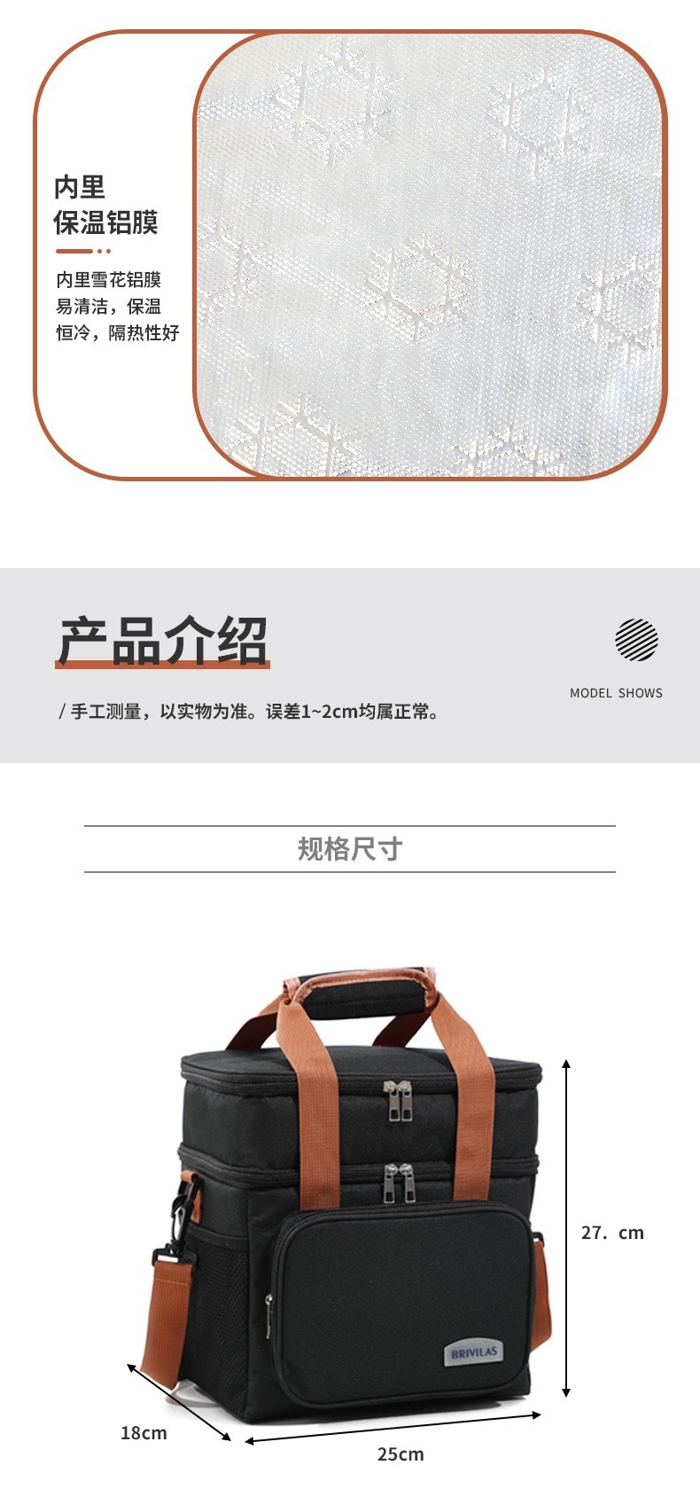 • 휴대용 보온가방 [블랙] 12.5L 더블 레이어 하이트닝 크로스 바디
